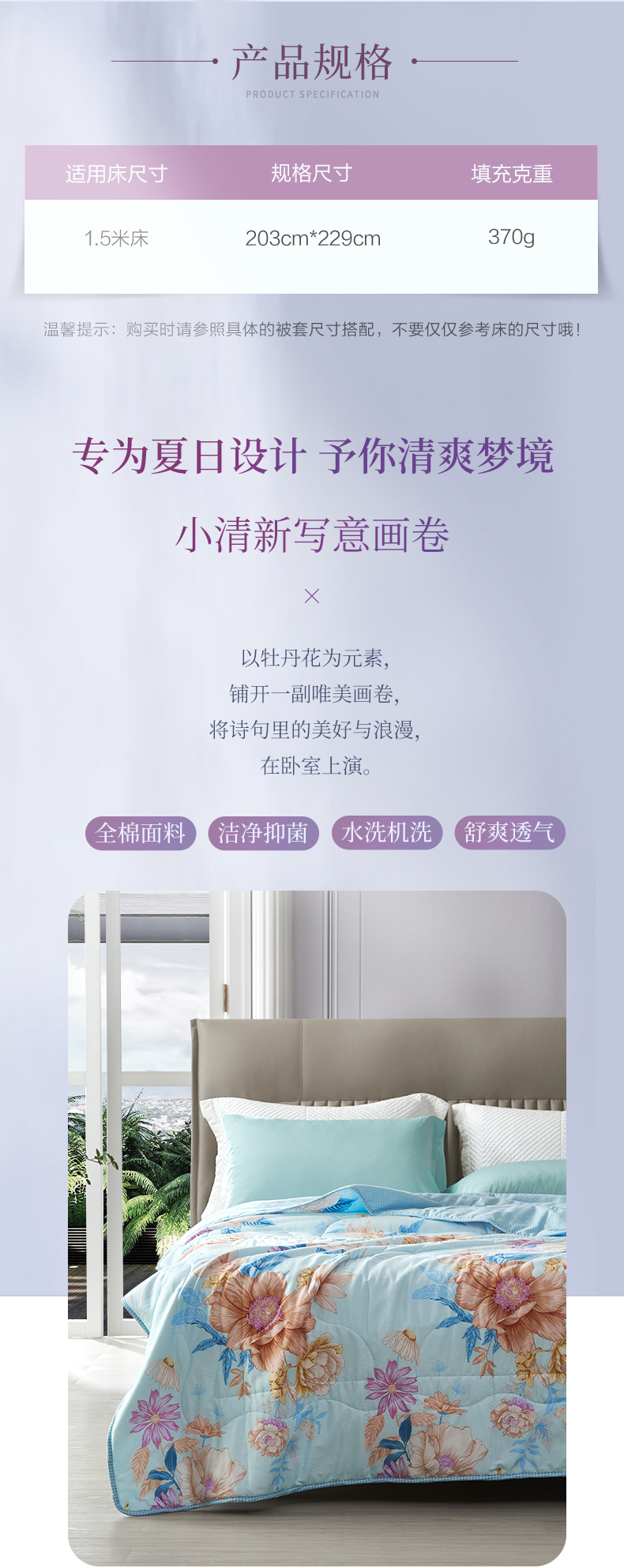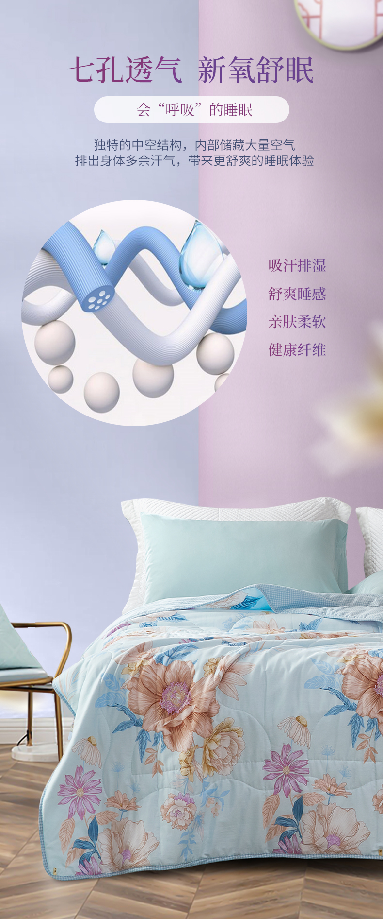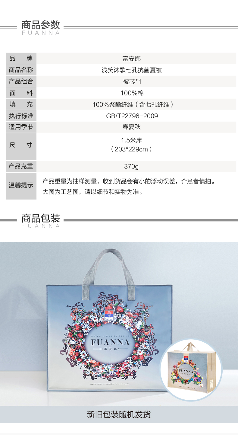 商品名称:FUANNA/富安娜浅笑沐歌七孔抗菌夏被203*229cm 370g