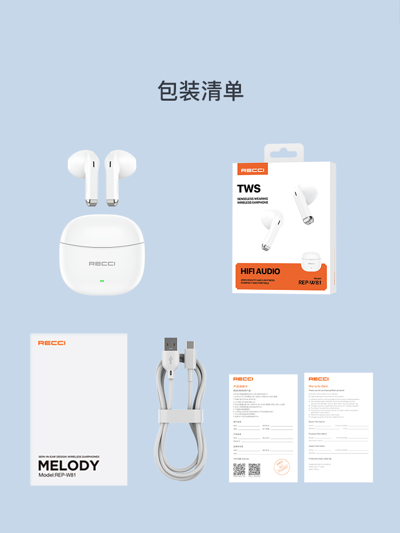 商品名称:Recci/锐思雅音TWS无线耳机REP-W81