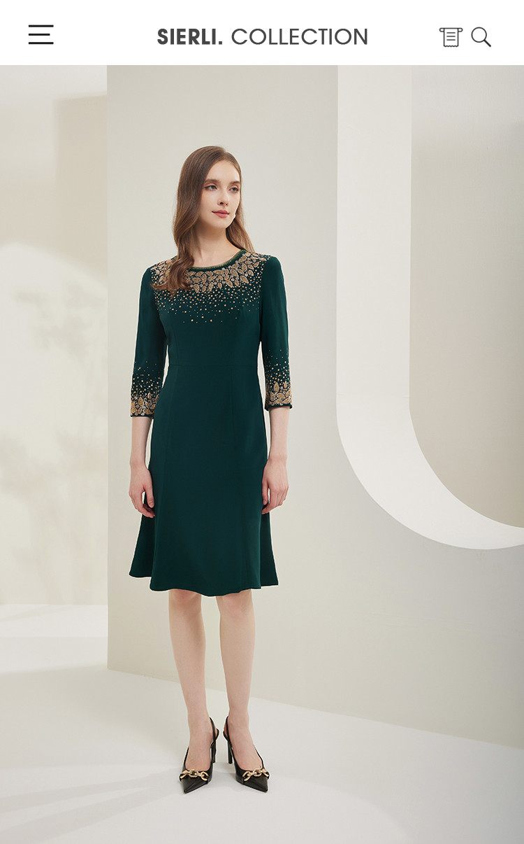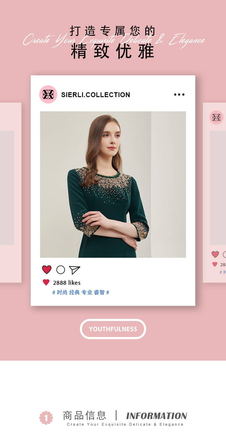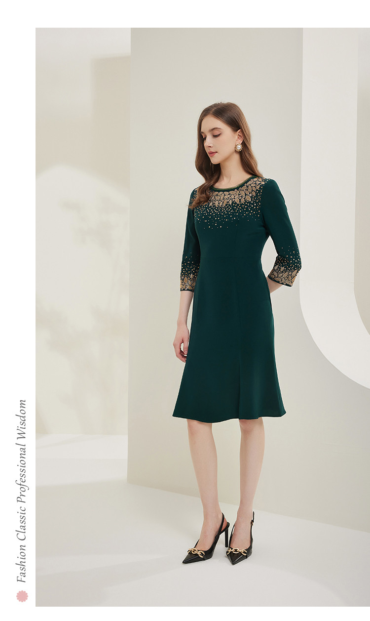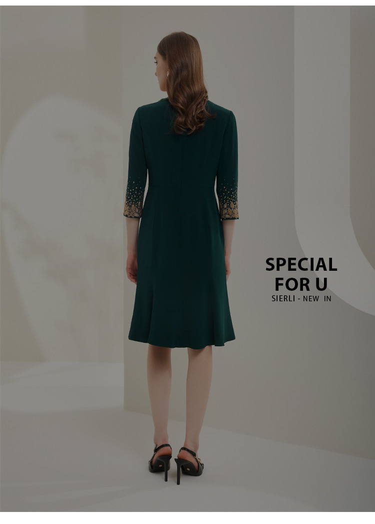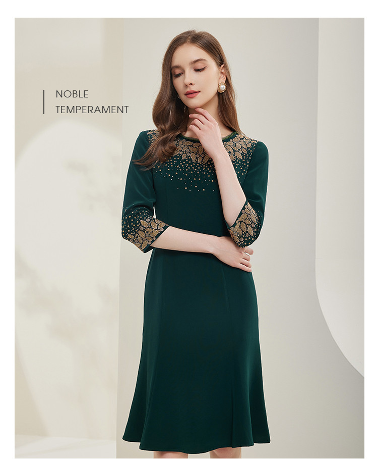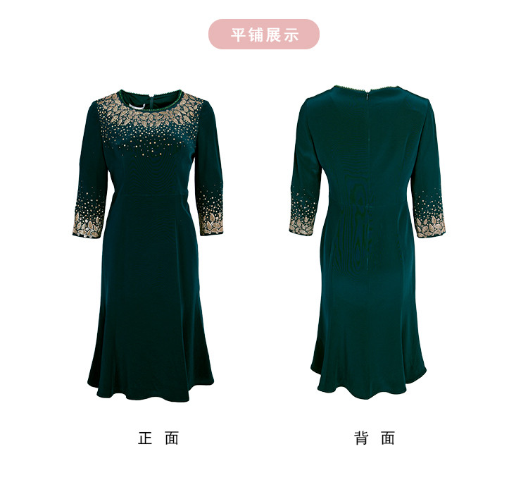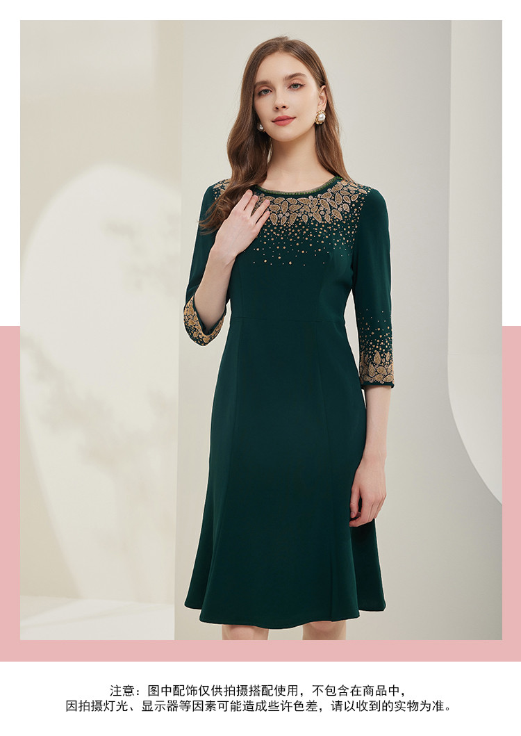 商品名称:商场同款秋圆领奢华收腰鱼尾造型礼服款中袖连衣裙 996255