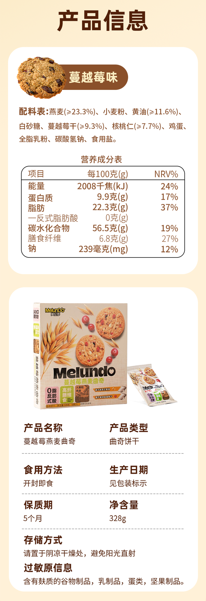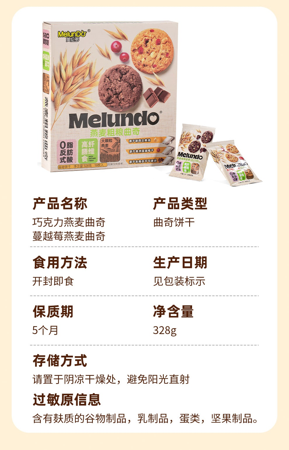 商品名称:Melundo/美伦多燕麦曲奇饼干328g