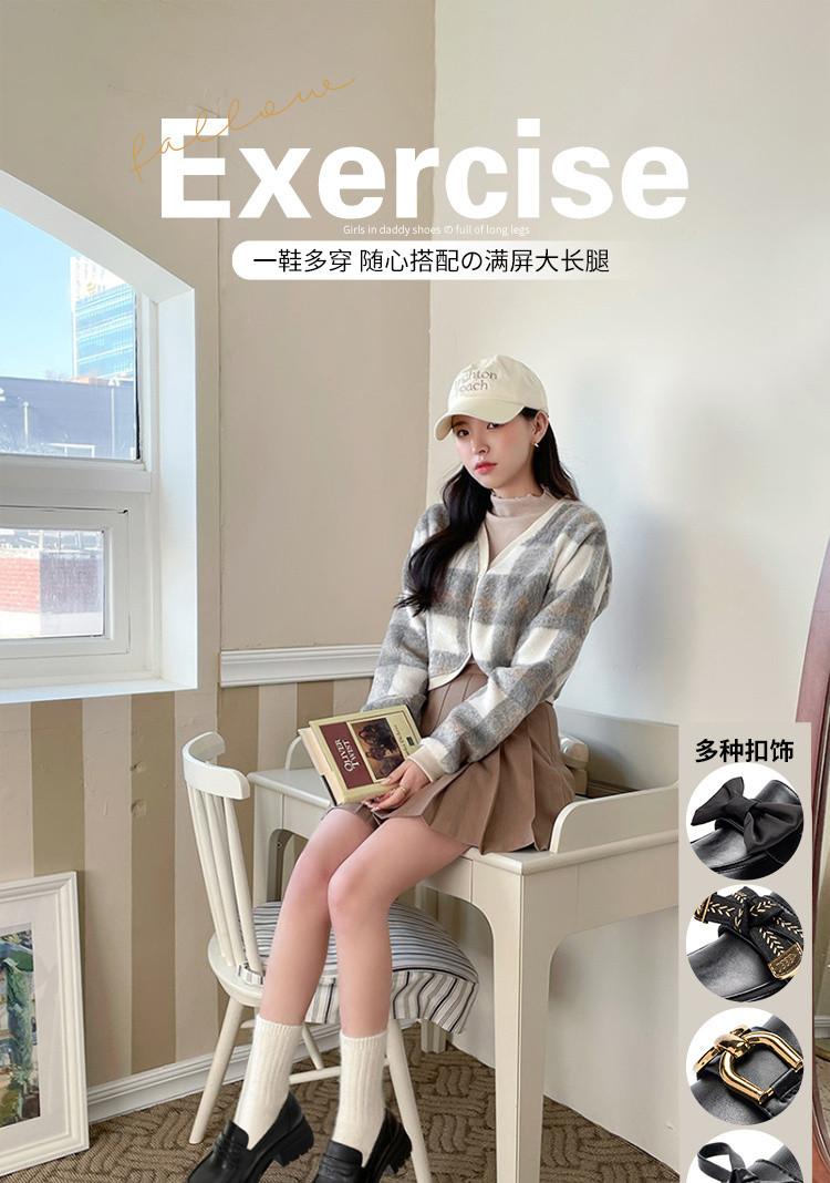 商品名称:【一鞋五穿】精致蝴蝶结一脚蹬女鞋气质小皮鞋女乐福鞋子女单鞋女 432960