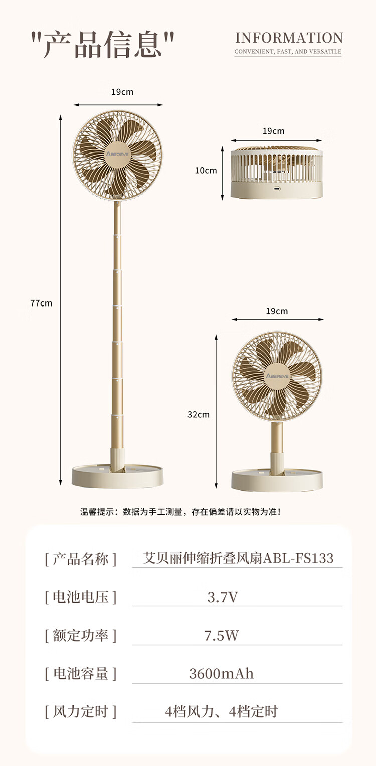 商品名称:ABEREVE/艾贝丽折叠风扇ABL-FS133