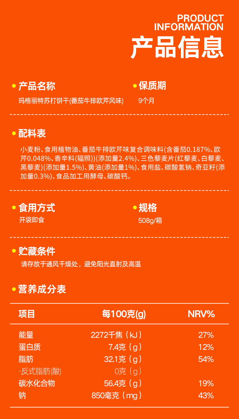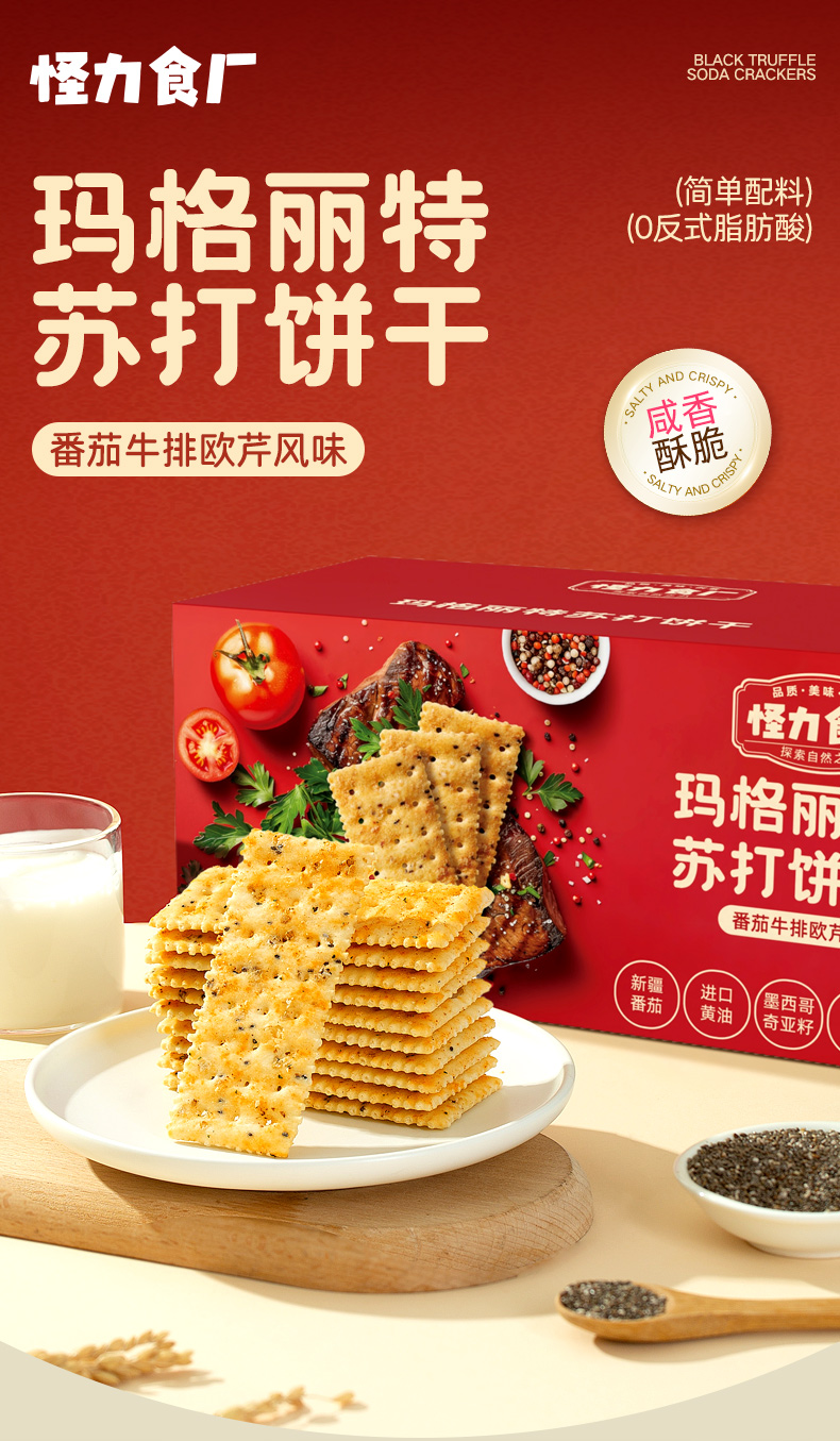 商品名称:怪力食厂玛格丽特番茄牛排欧芹风味苏打饼干180g