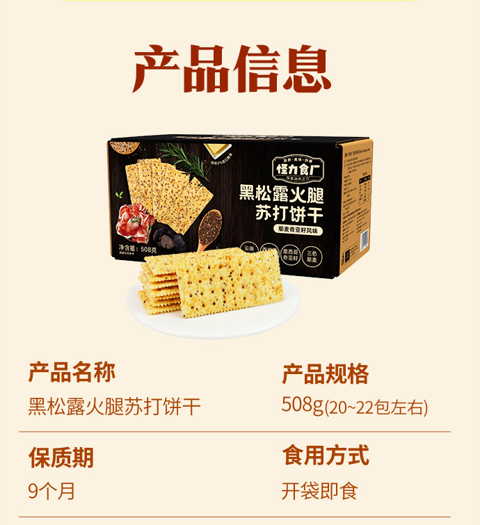 商品名称:怪力食厂黑松露火腿苏打饼干508g