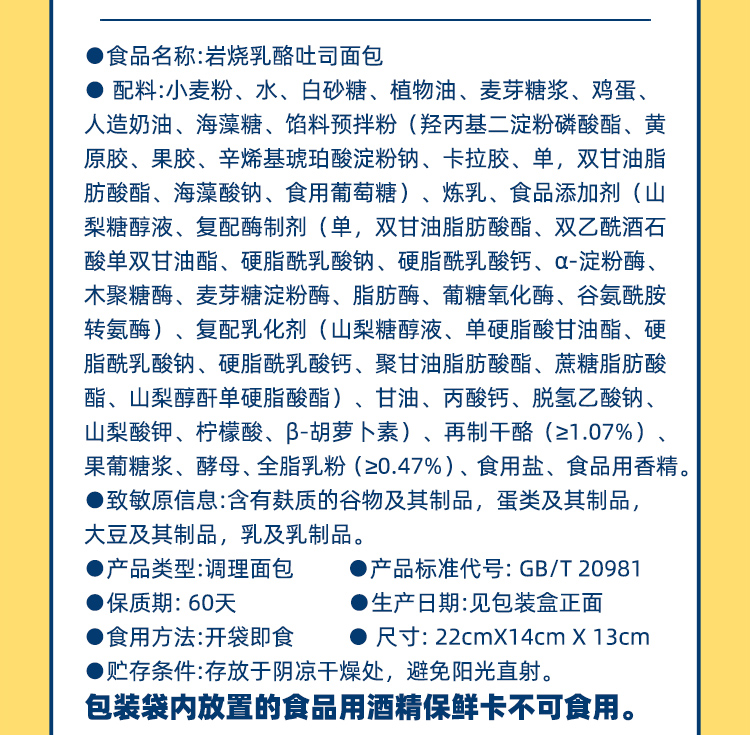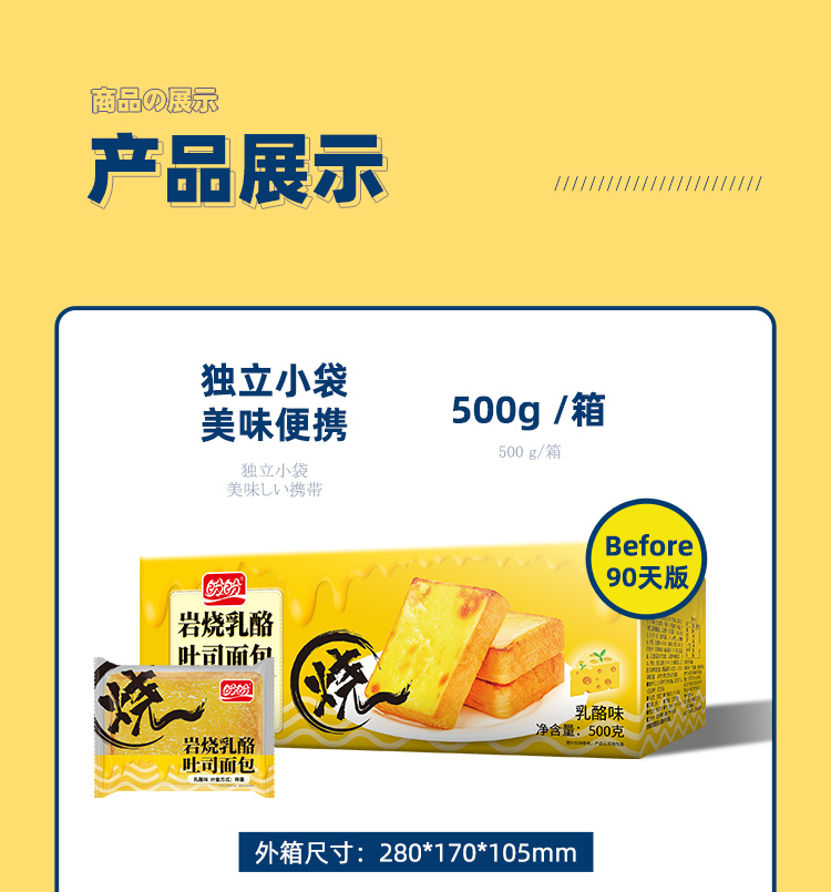 商品名称:盼盼岩烧乳酪吐司面包500g*2箱