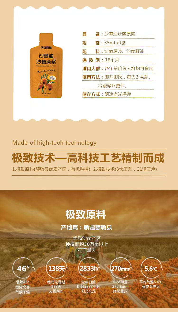 商品名称:沃福百瑞沙棘籽油沙棘原浆35ml*9袋