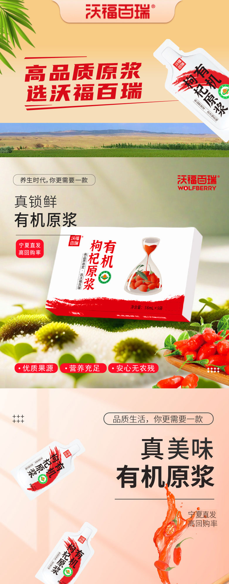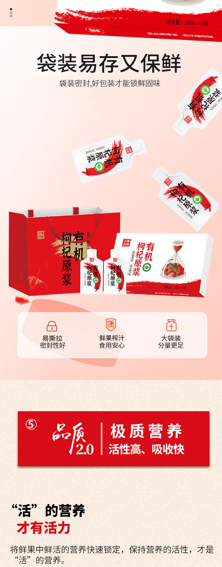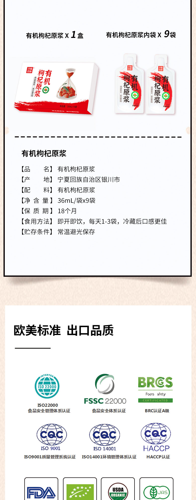 商品名称:沃福百瑞有机枸杞原浆36ml*9袋