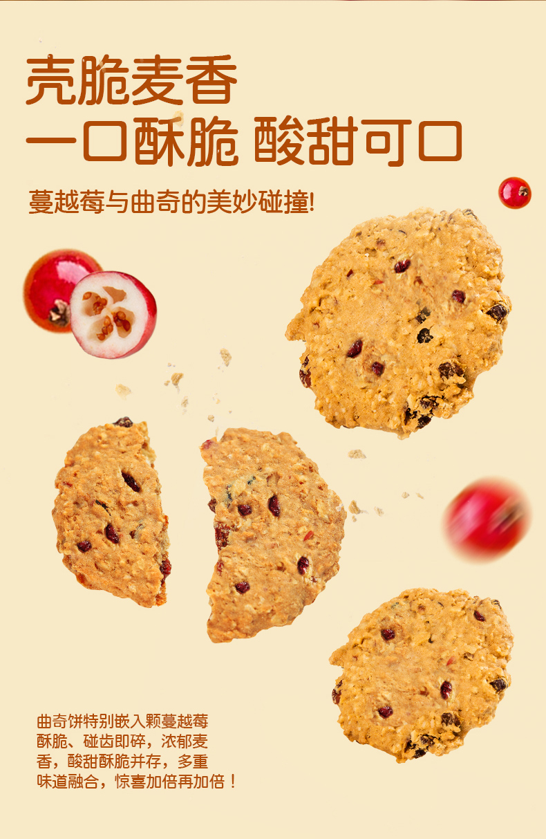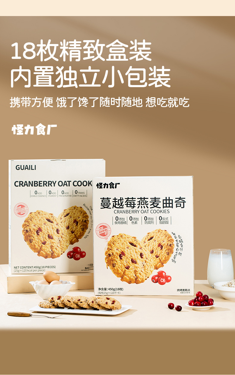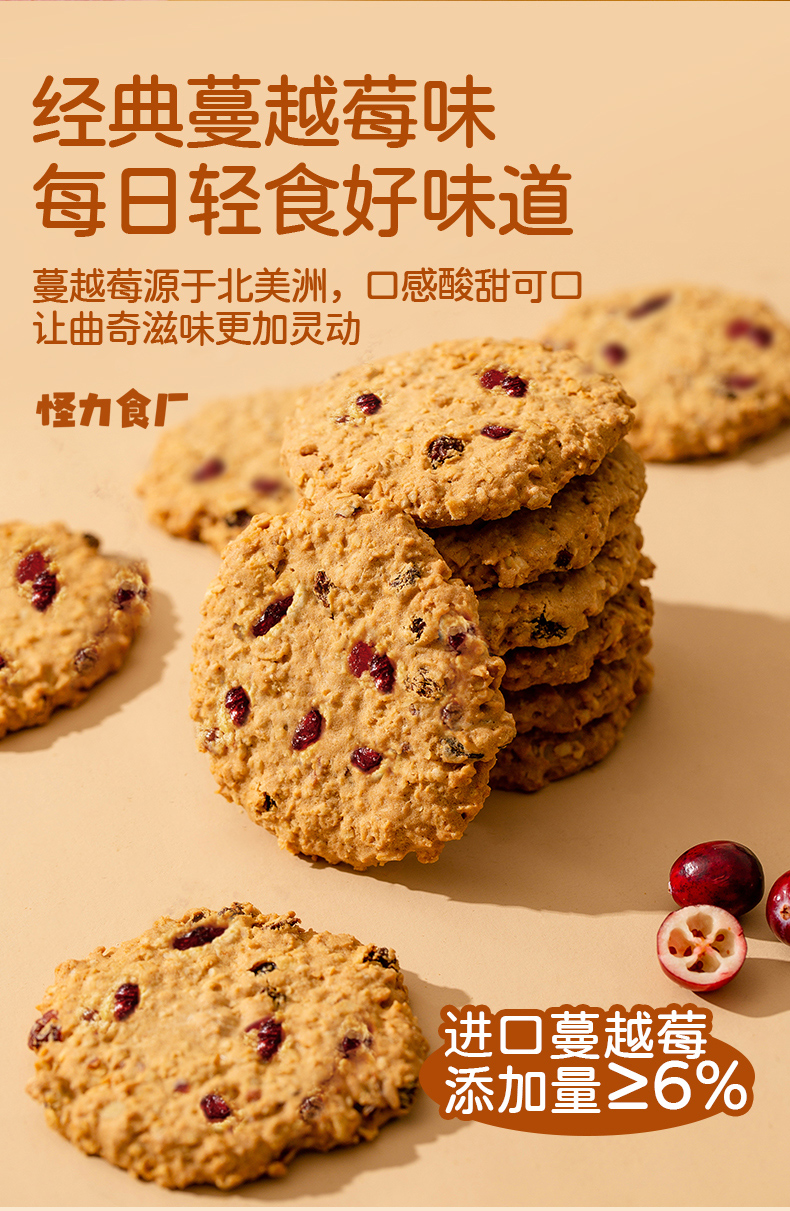 怪力食厂蔓越莓燕麦曲奇饼干450g