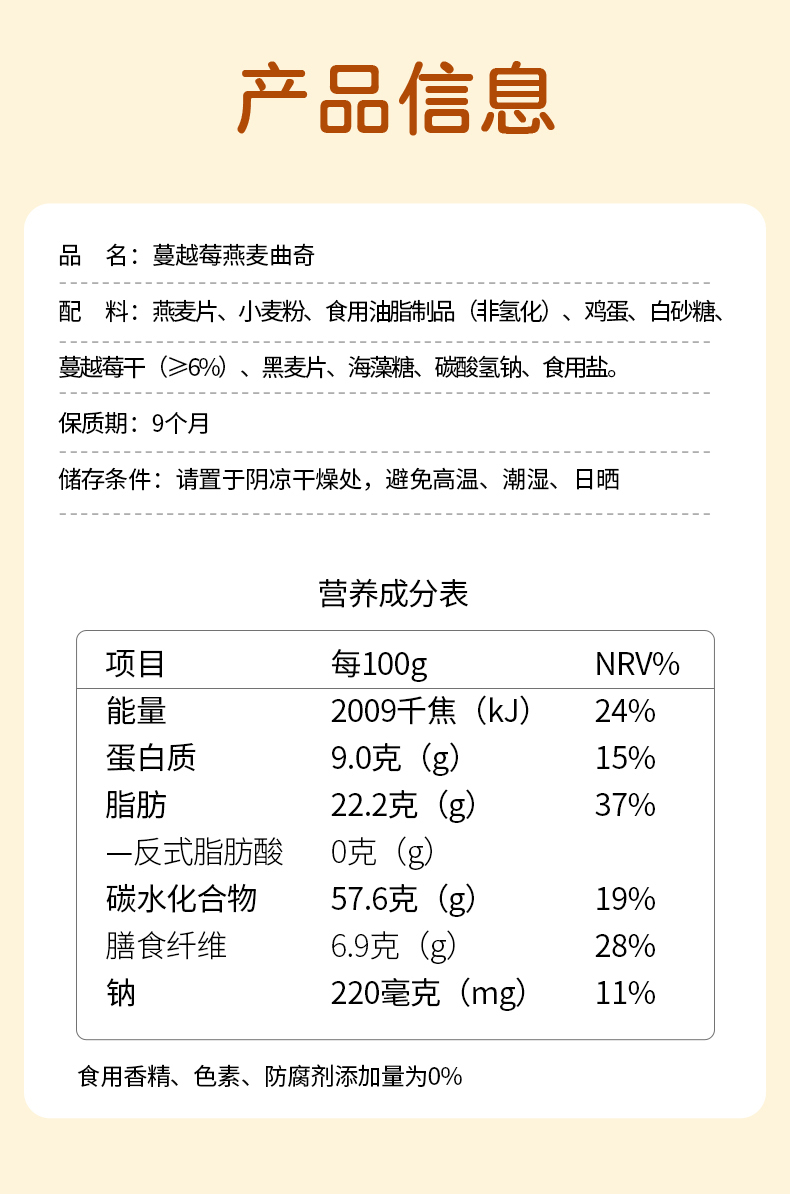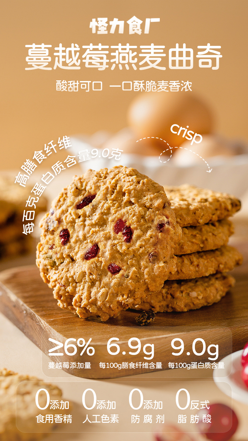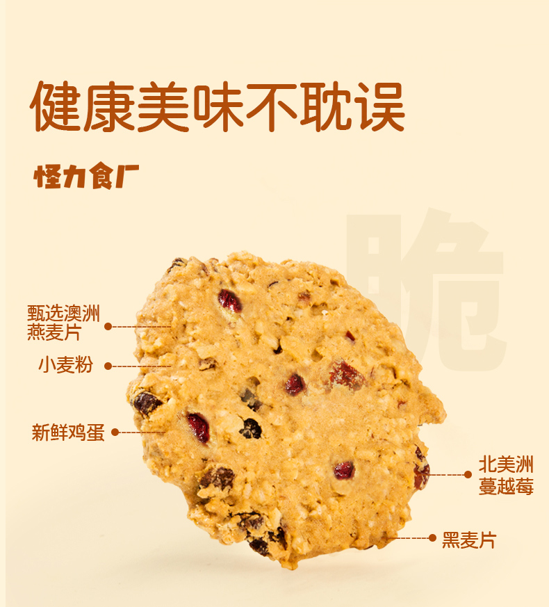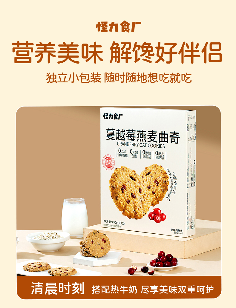 商品名称:怪力食厂蔓越莓燕麦曲奇饼干450g