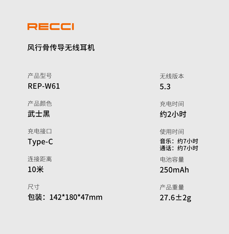 商品名称:Recci/锐思风行骨传导无线耳机REP-W61