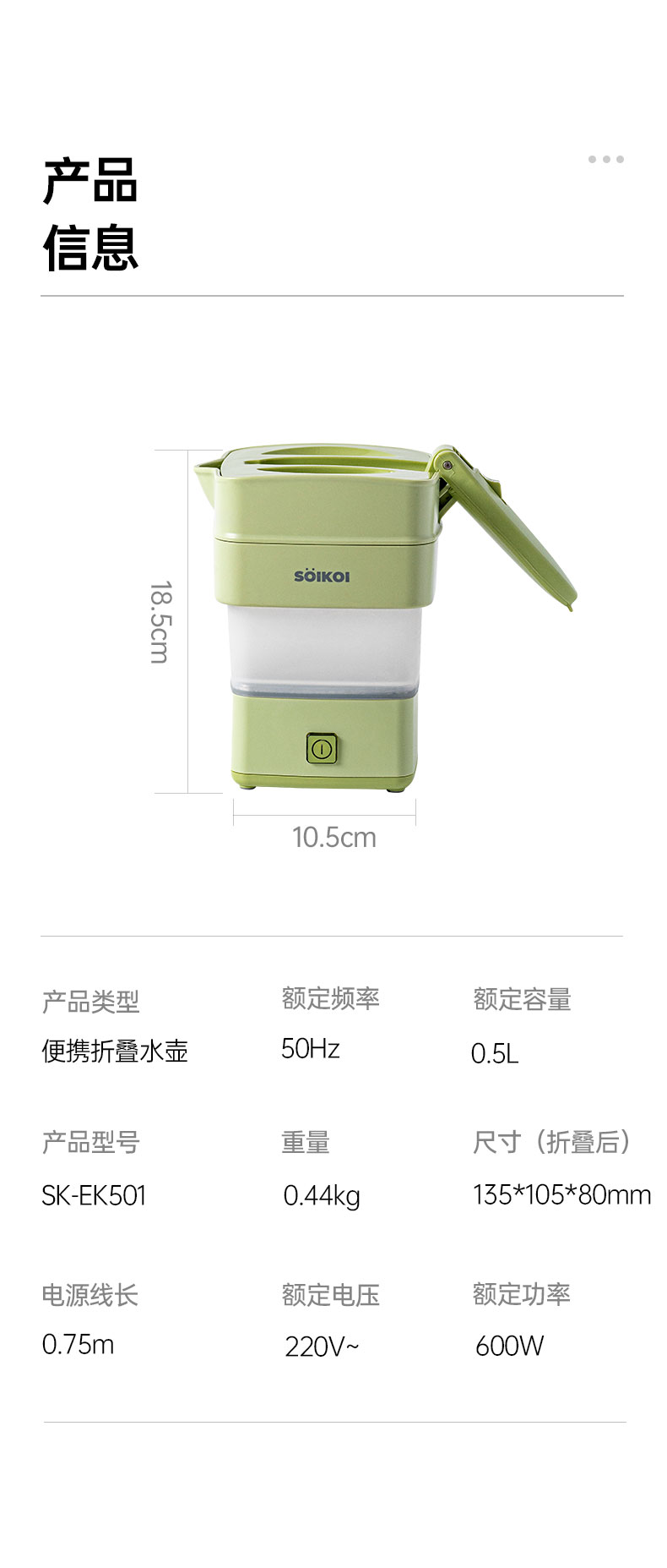 商品名称:SOIKOI/司崎库0.5升便携折叠水壶SK-EK501