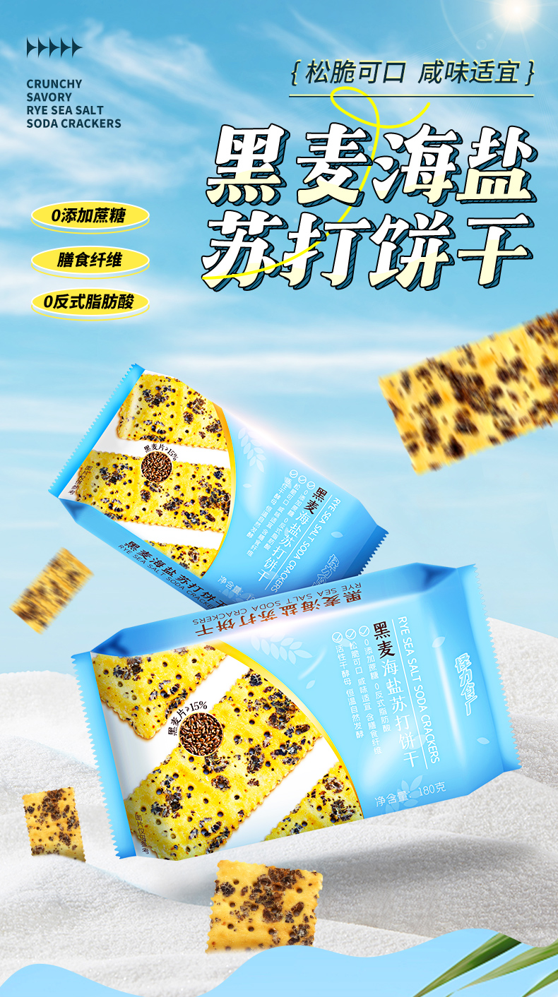 怪力食厂黑麦海盐苏打饼干180g