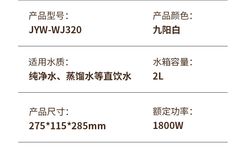 商品名称:【京东配送】Joyoung/九阳2升即热式饮水机-九阳白JYW-WJ320