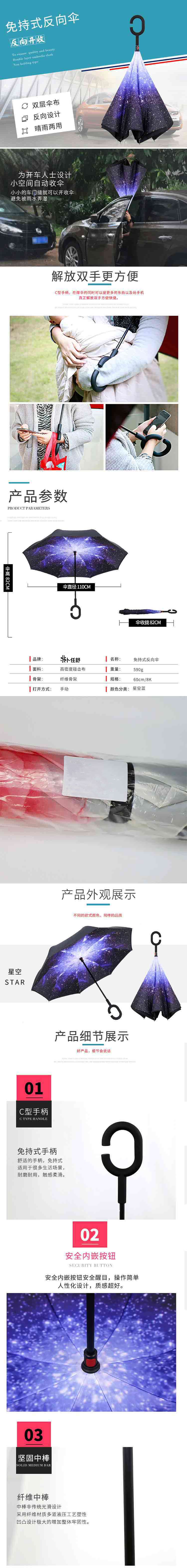 商品名称:卜任舒星空反向伞LK-709