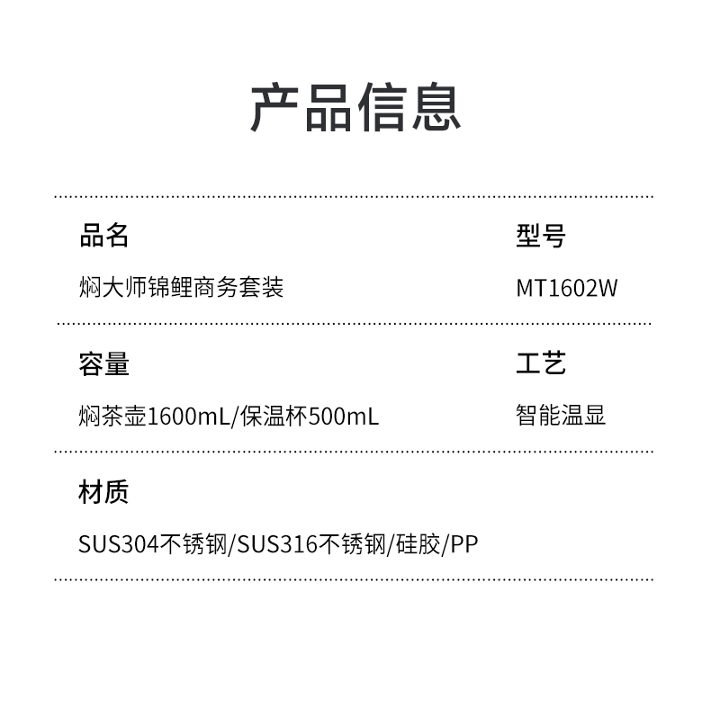 商品名称:焖大师经典甄选系列锦鲤保温杯壶2件套MT1602W