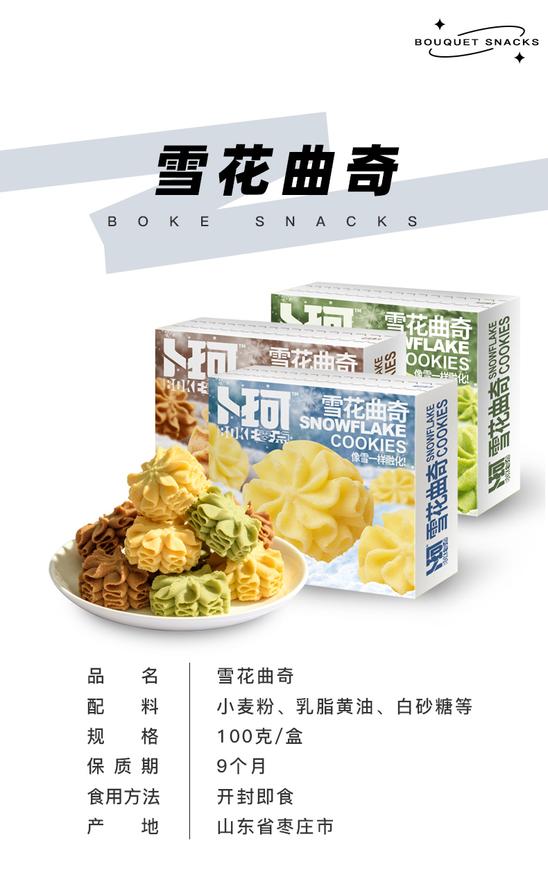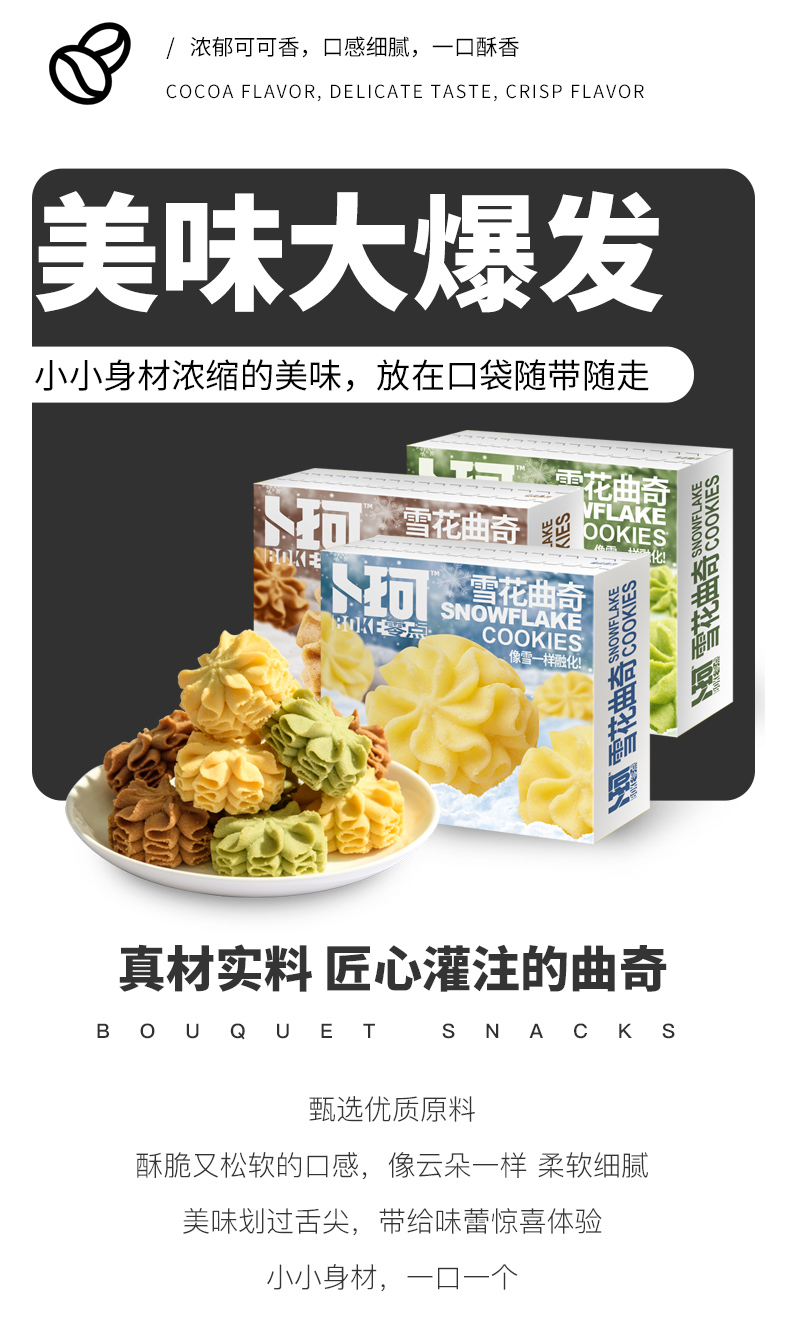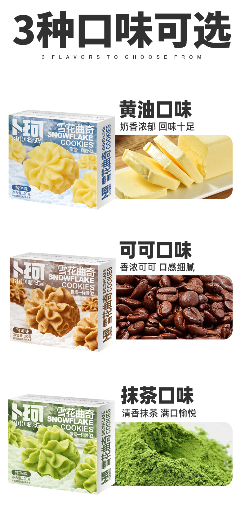 商品名称:卜珂雪花曲奇三口味组合100g*3盒