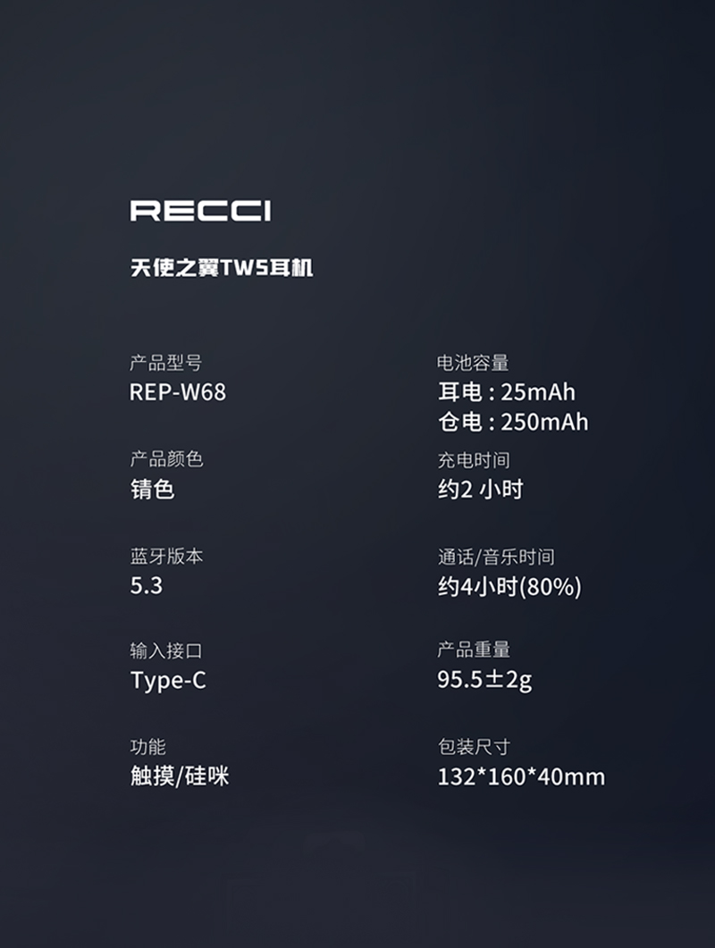 Recci/锐思天使之翼蓝牙耳机REP-W68