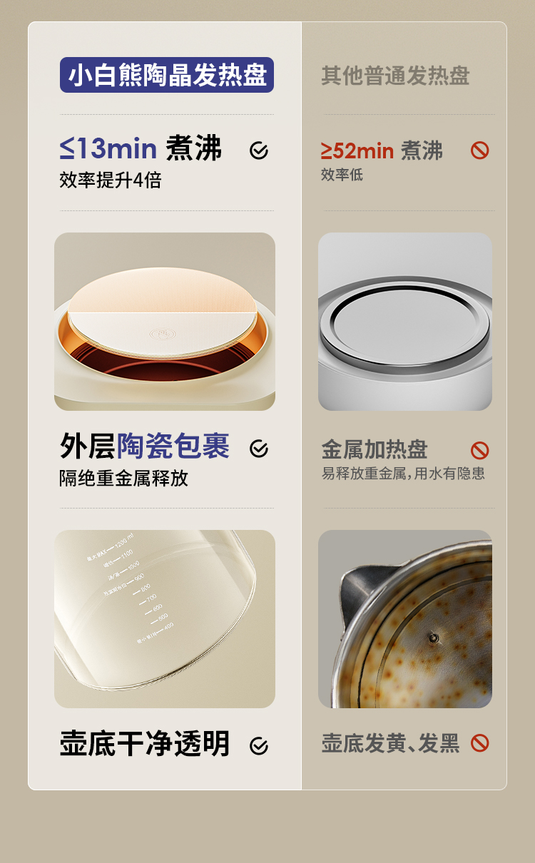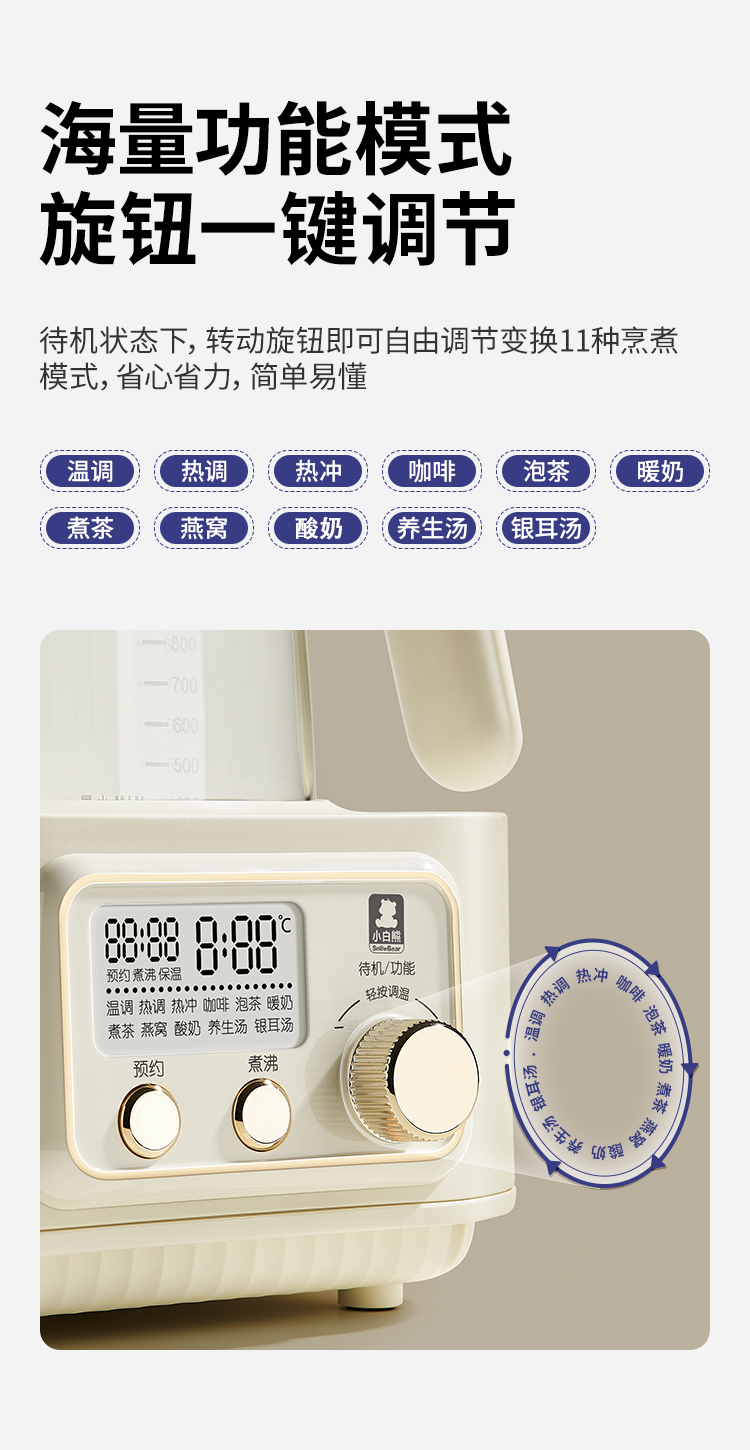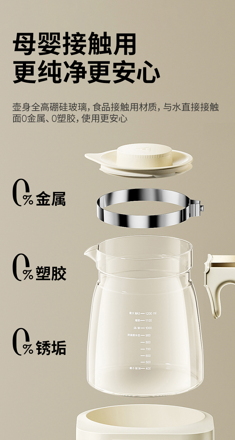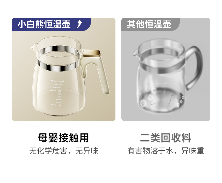 商品名称:Snow Bear/小白熊1.2升白款全玻璃多功能恒温热水壶HL-5025