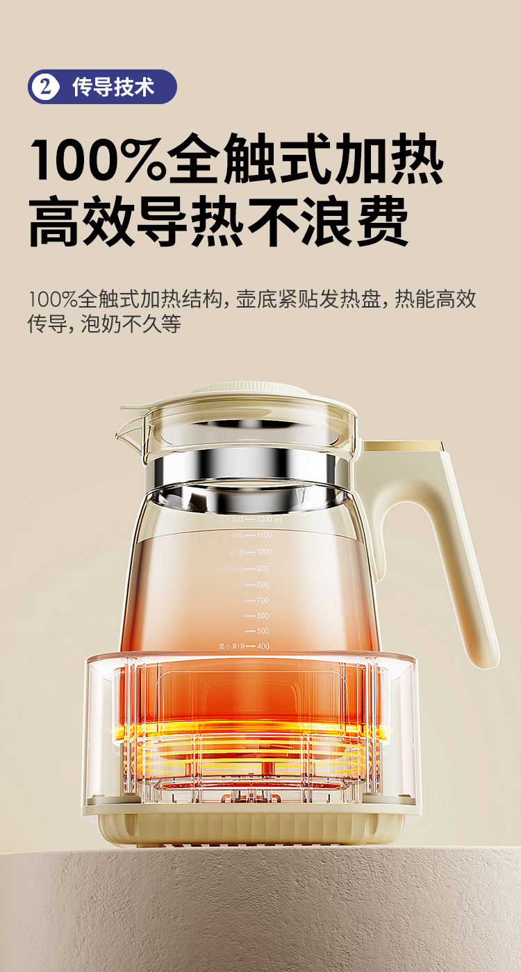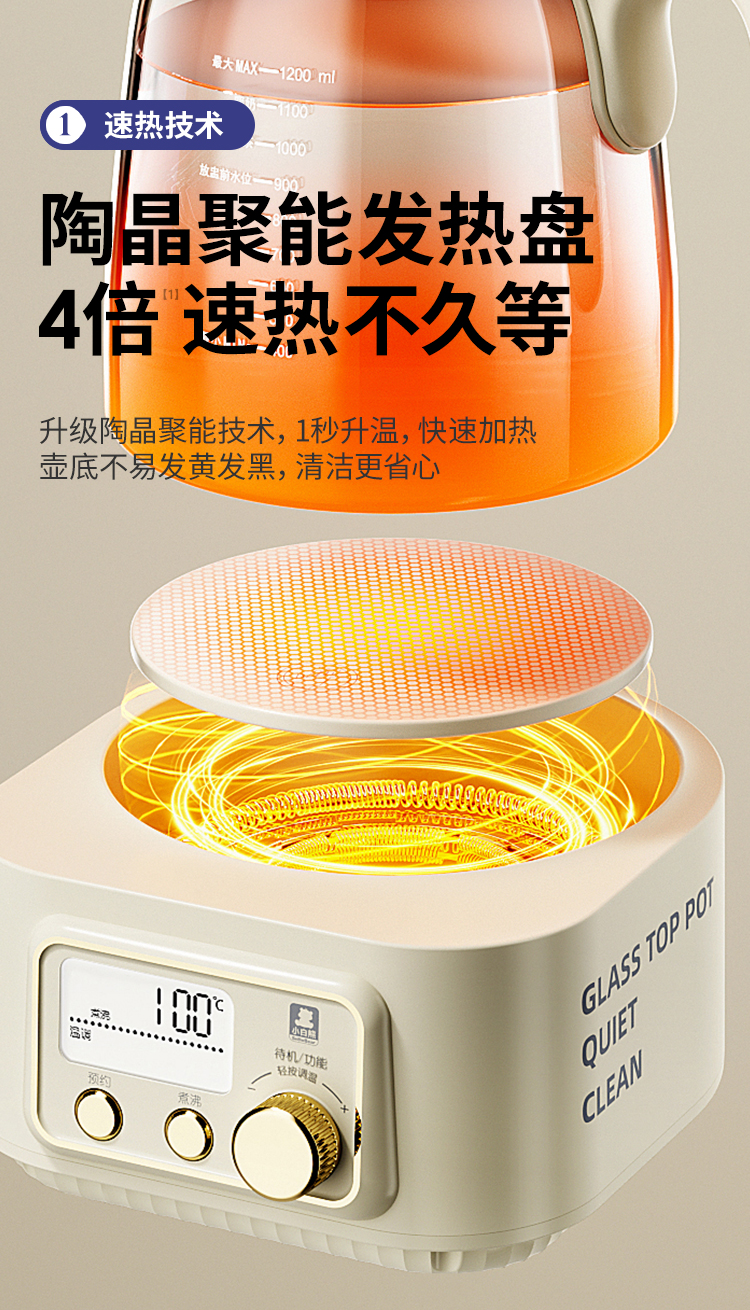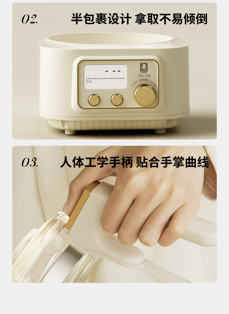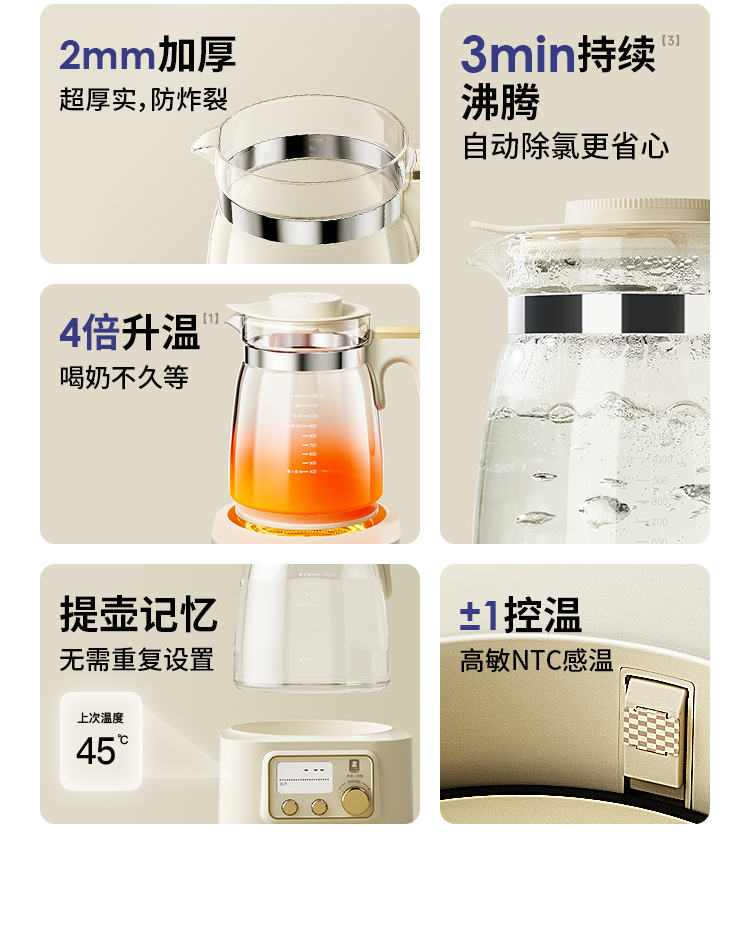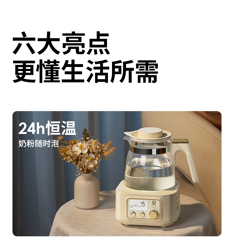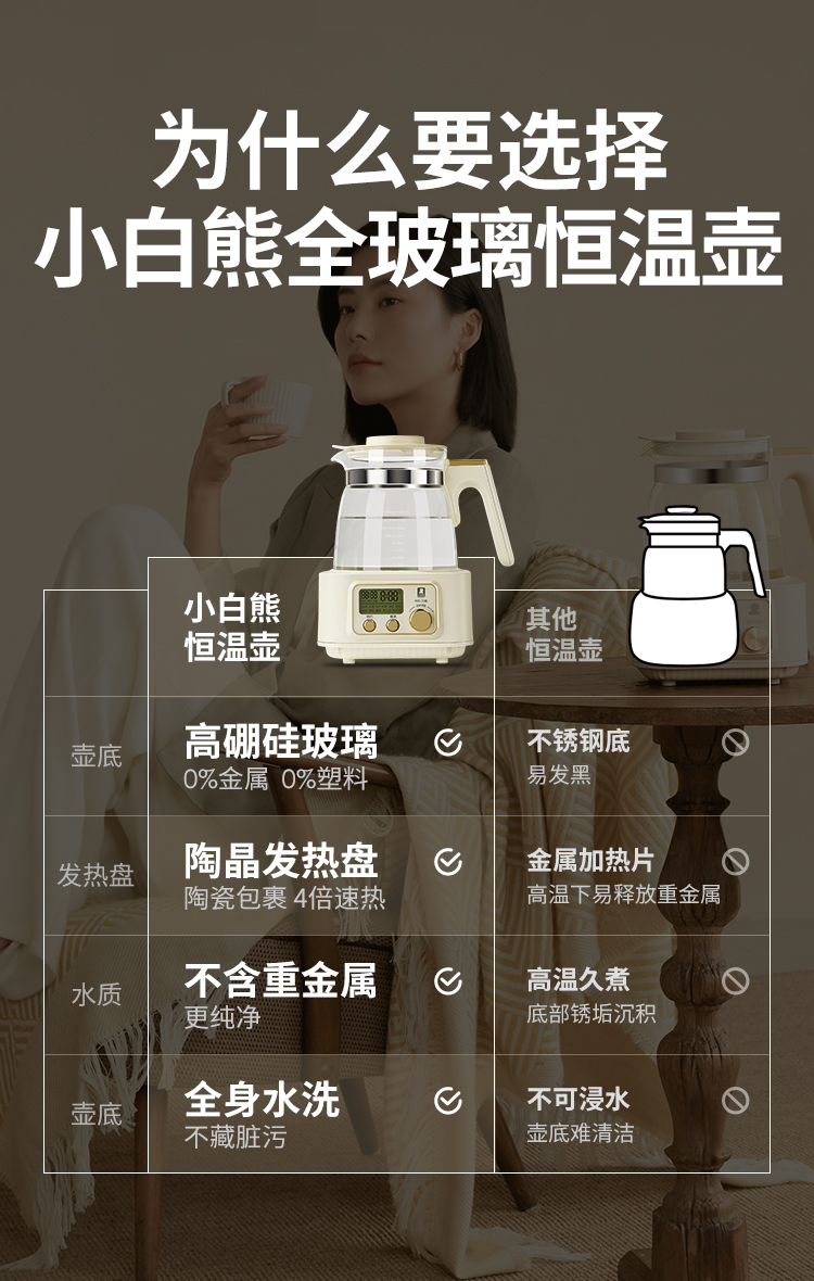 Snow Bear/小白熊1.2升白款全玻璃多功能恒温热水壶HL-5025