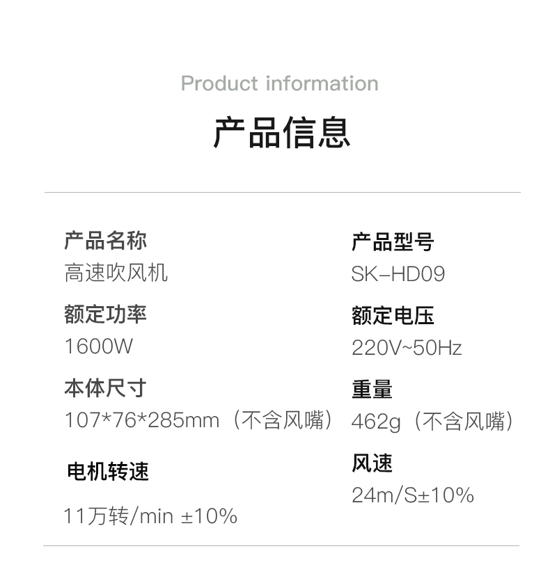 商品名称:SOIKOI/司崎库高速吹风机SK-HD09