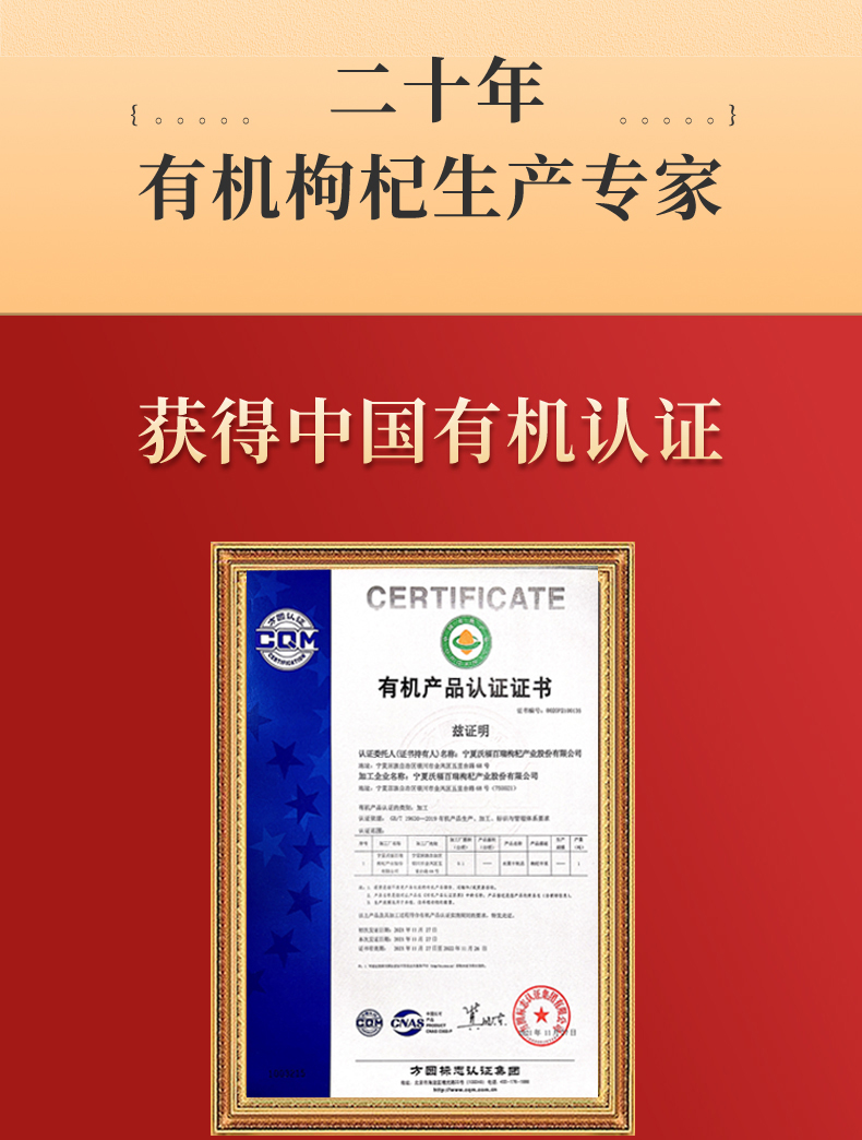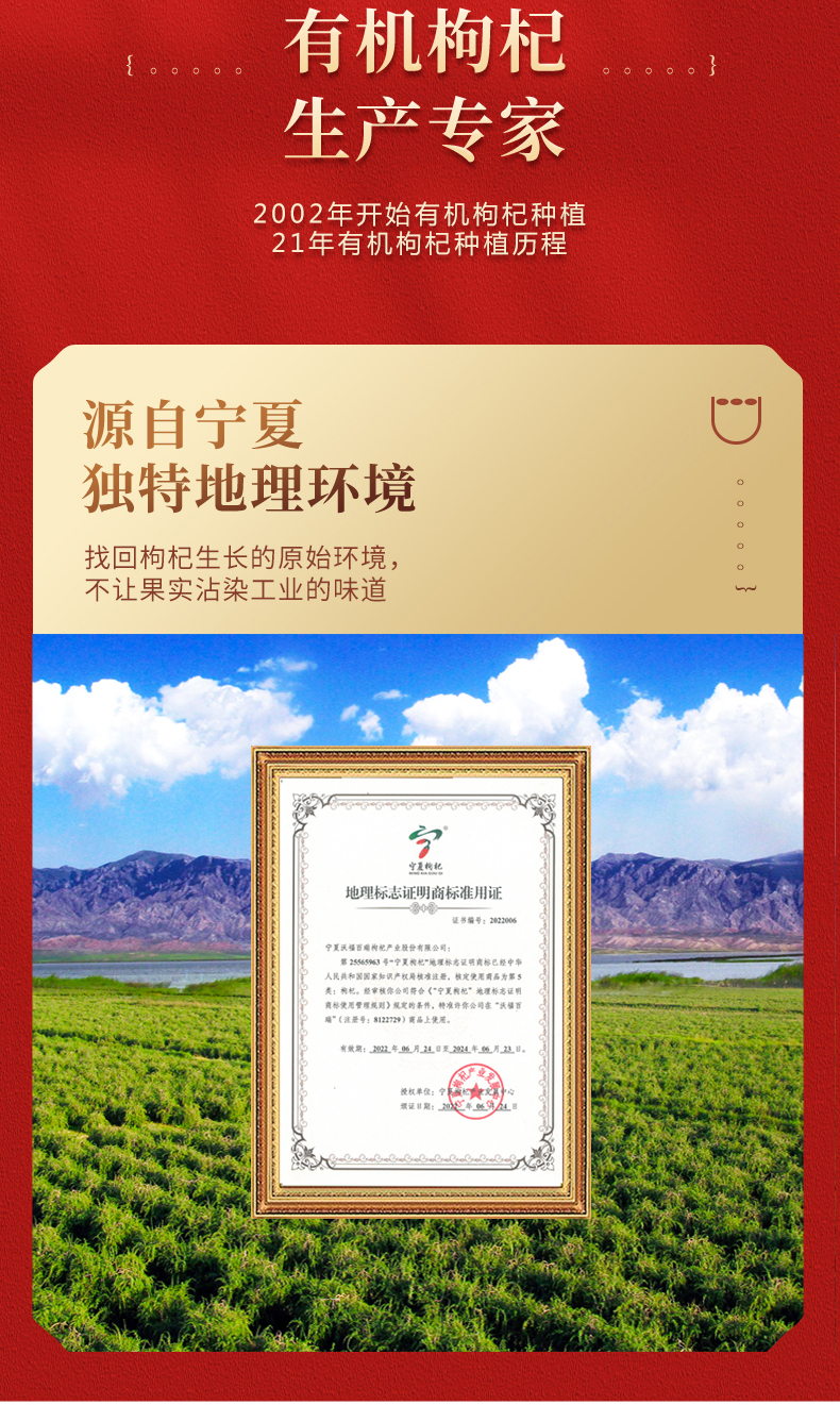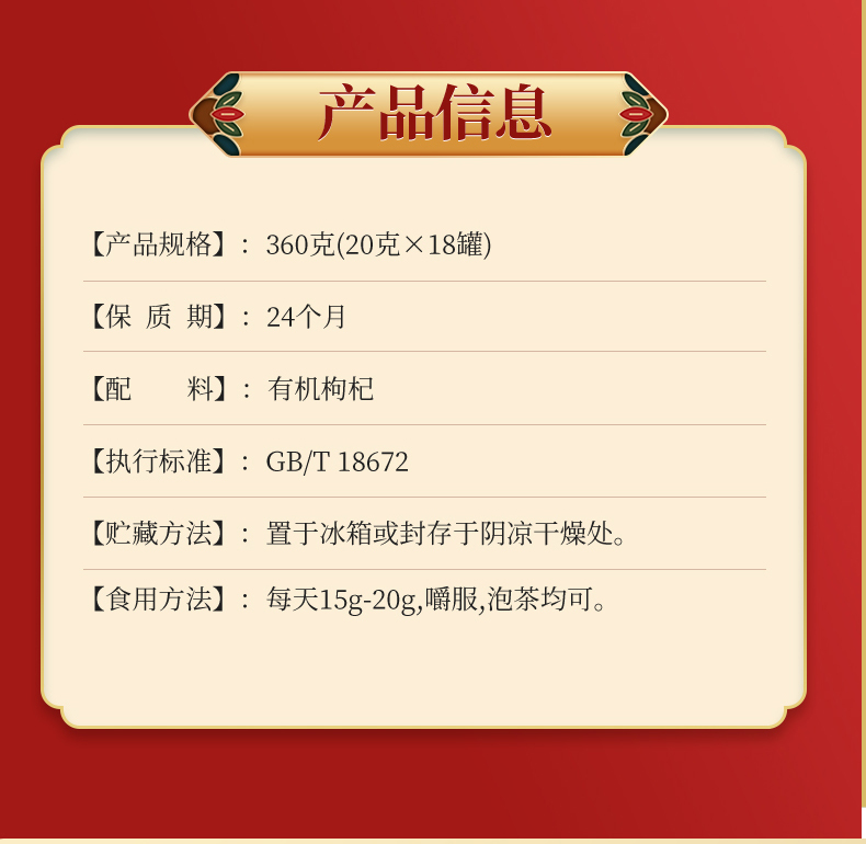 商品名称:沃福百瑞有机枸杞礼盒360g