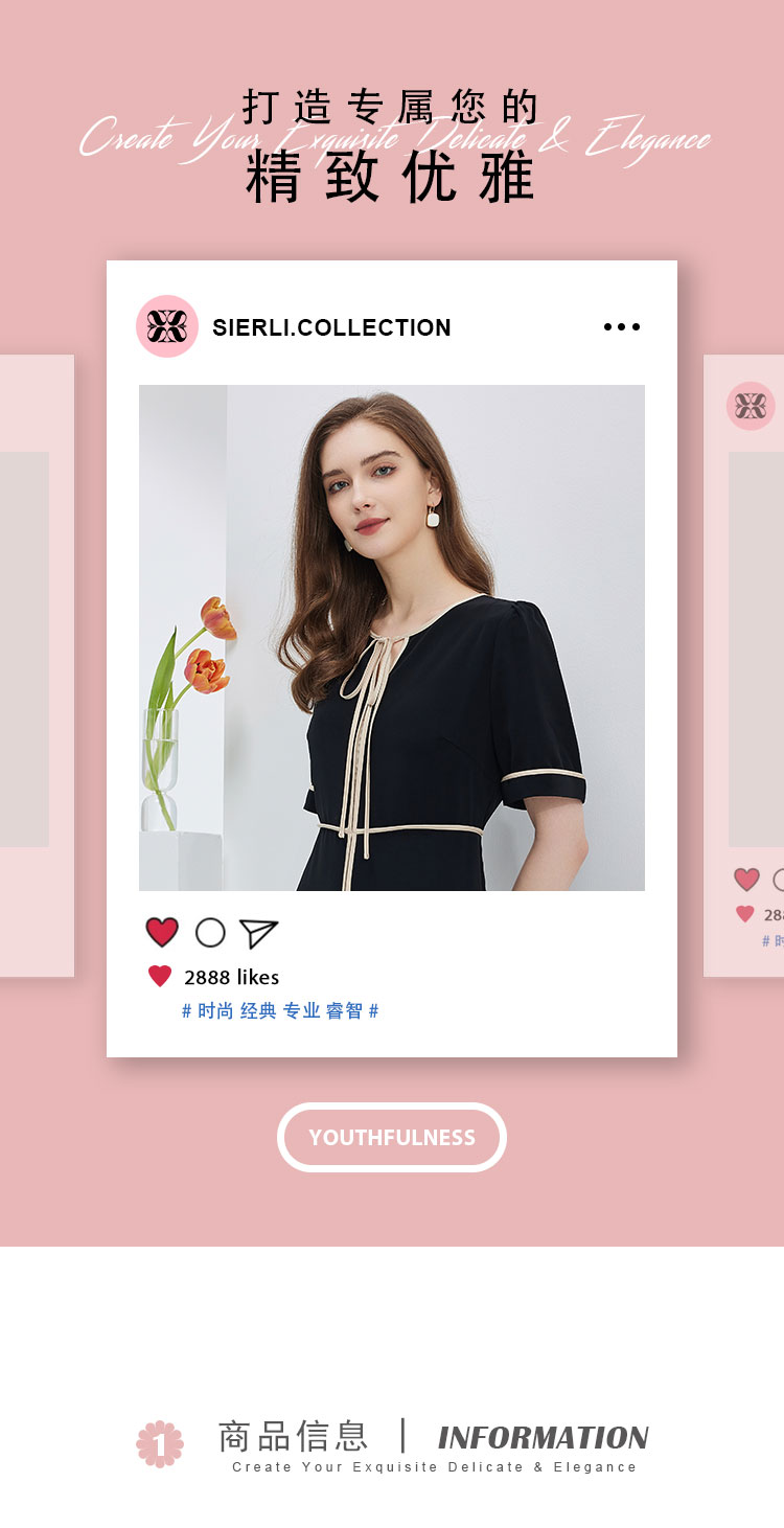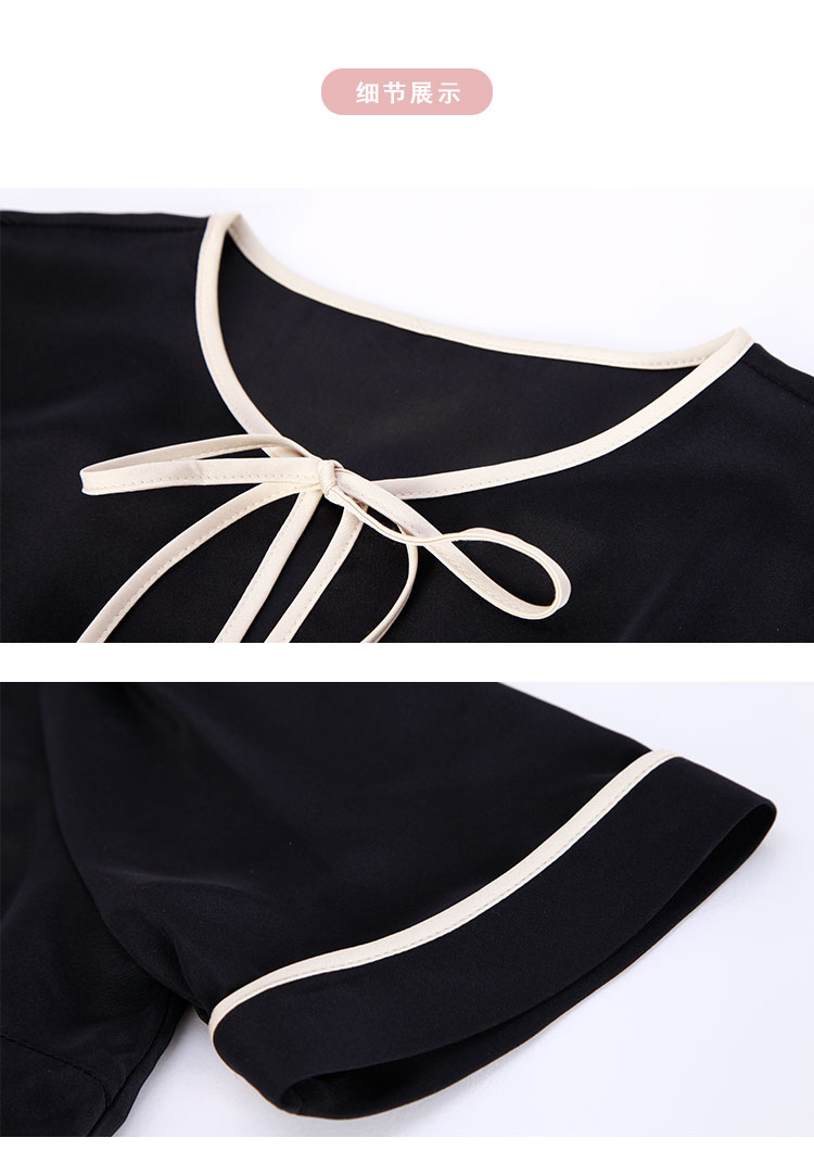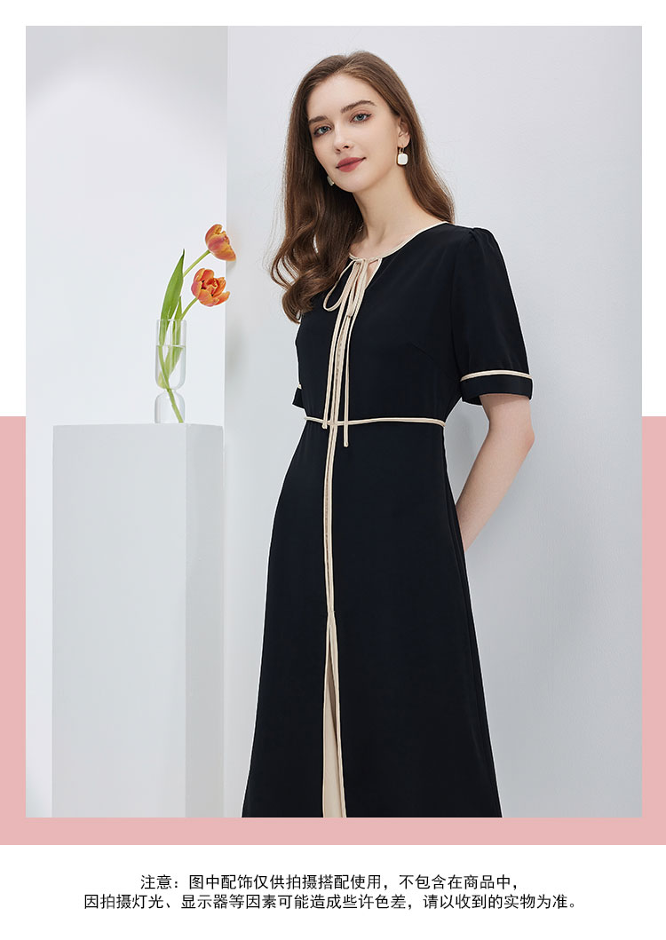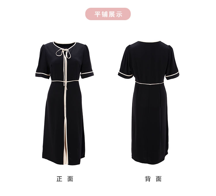 商品名称:连衣裙春夏时尚圆领蝴蝶结中长拼色收腰显瘦通勤连衣裙 407391