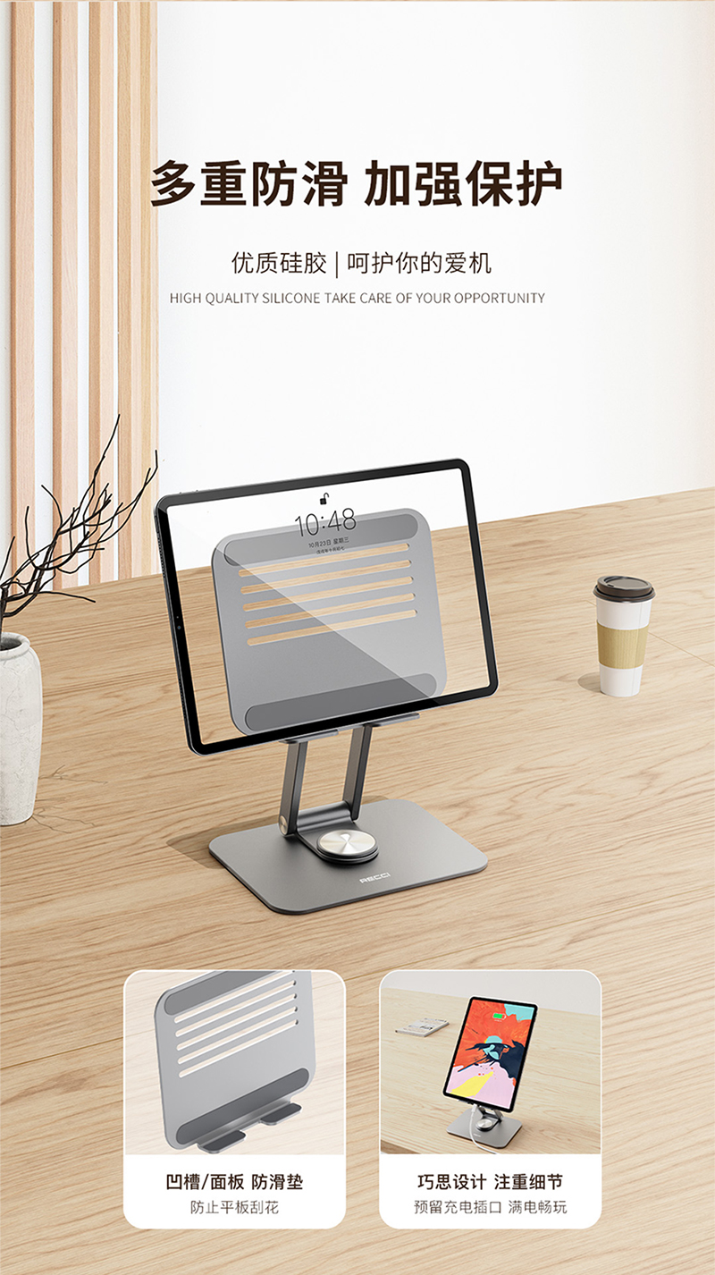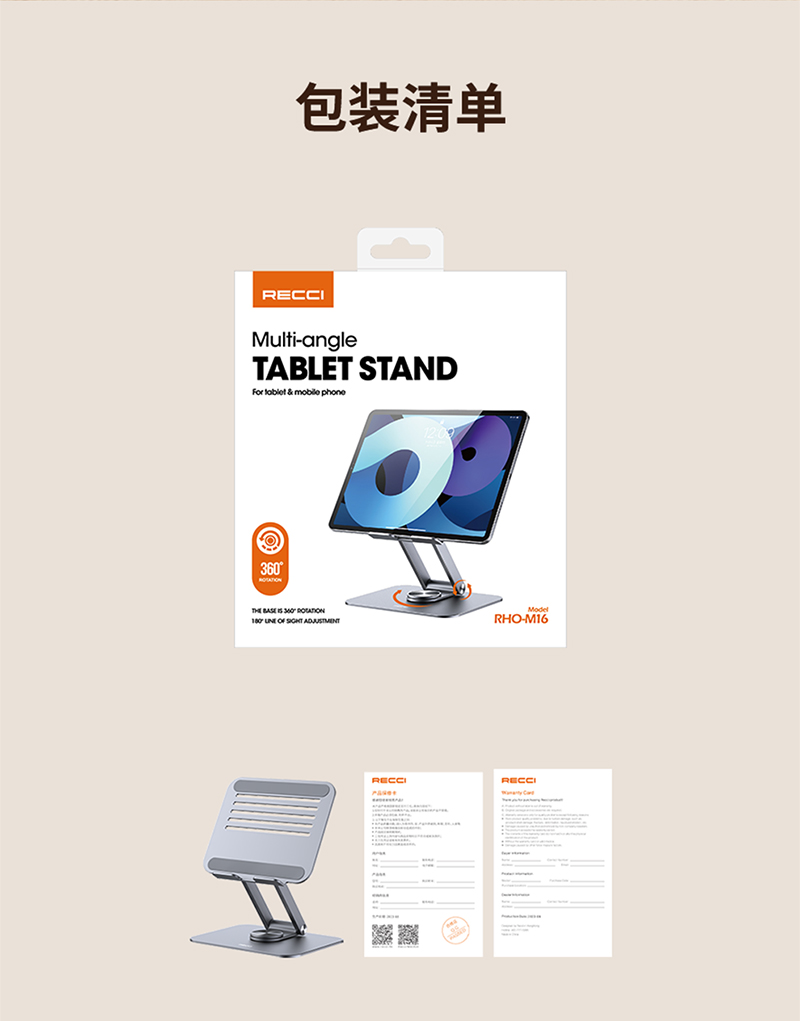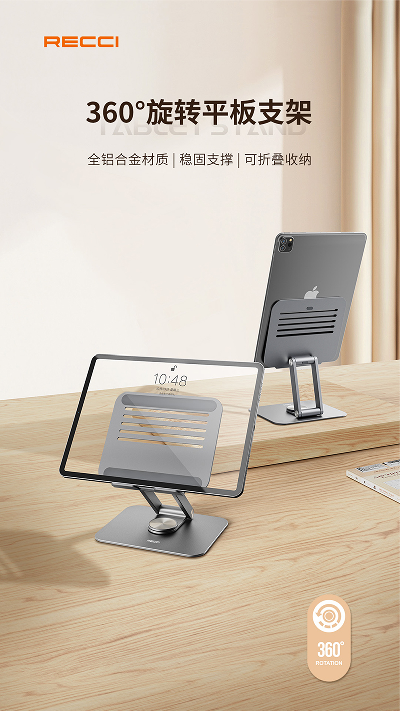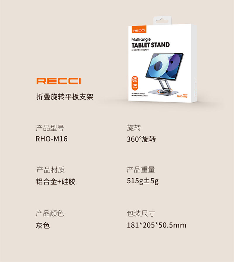 商品名称:Recci/锐思折叠旋转平板支架-灰色RHO-M16