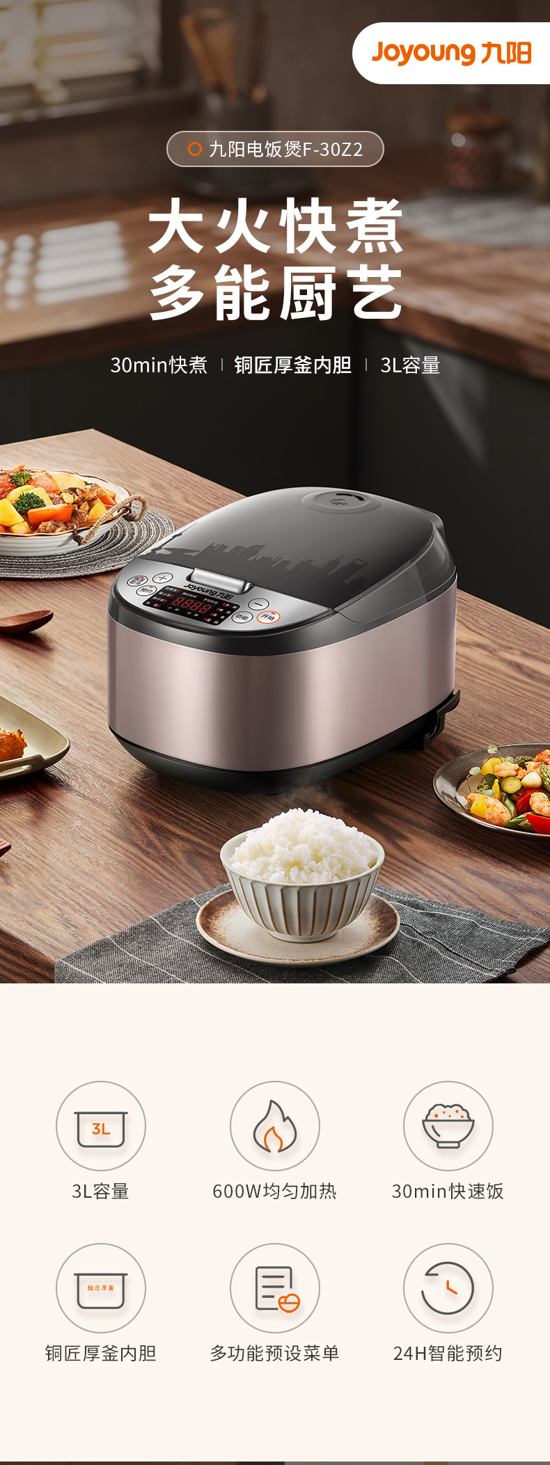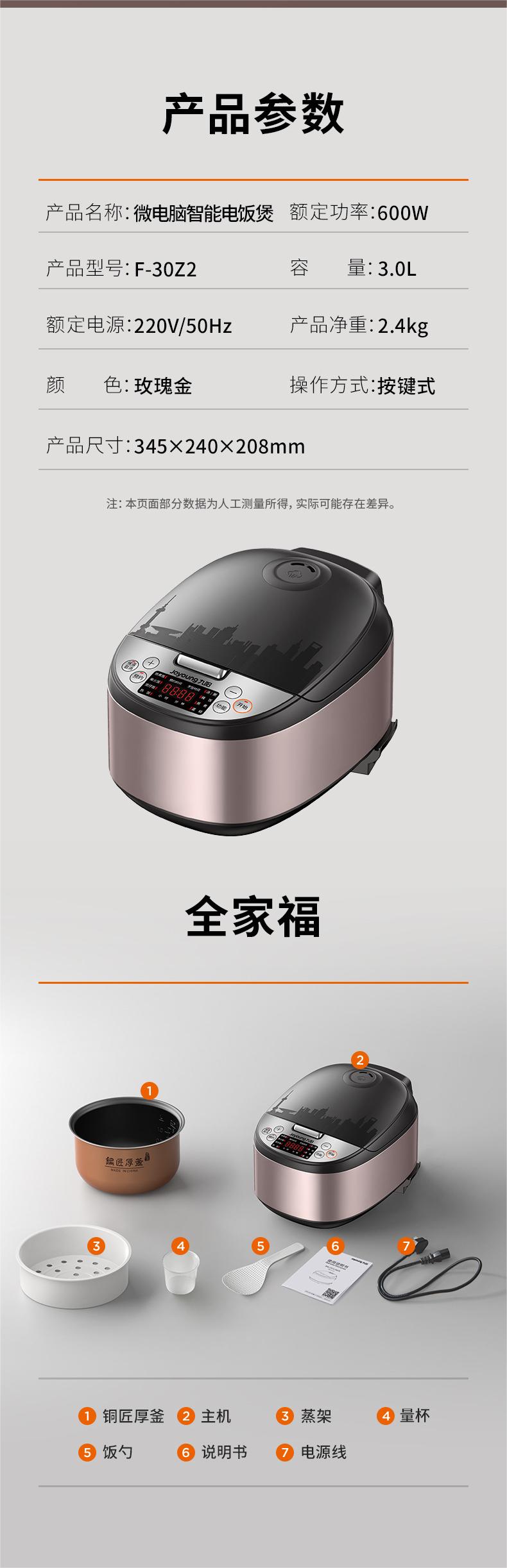 商品名称:【京东配送】Joyoung/九阳3升微电脑智能电饭煲30Z2