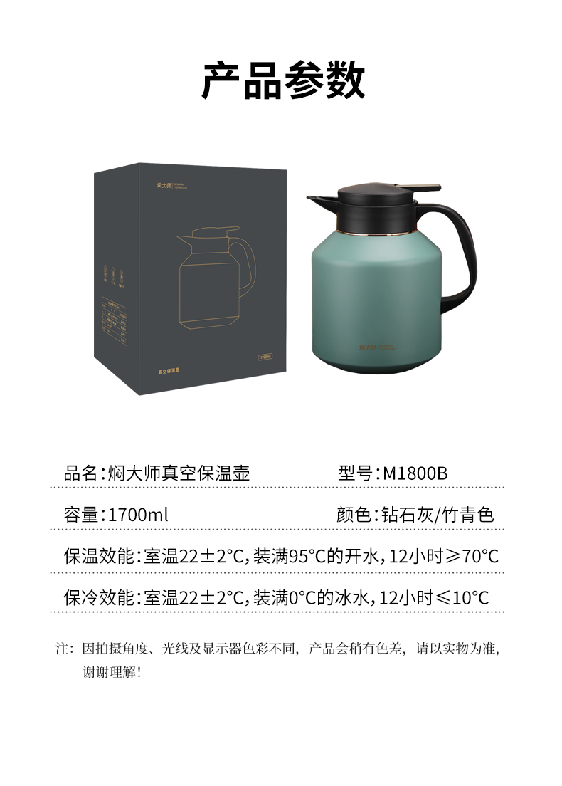 商品名称:焖大师1.7升真空保温壶M1800B