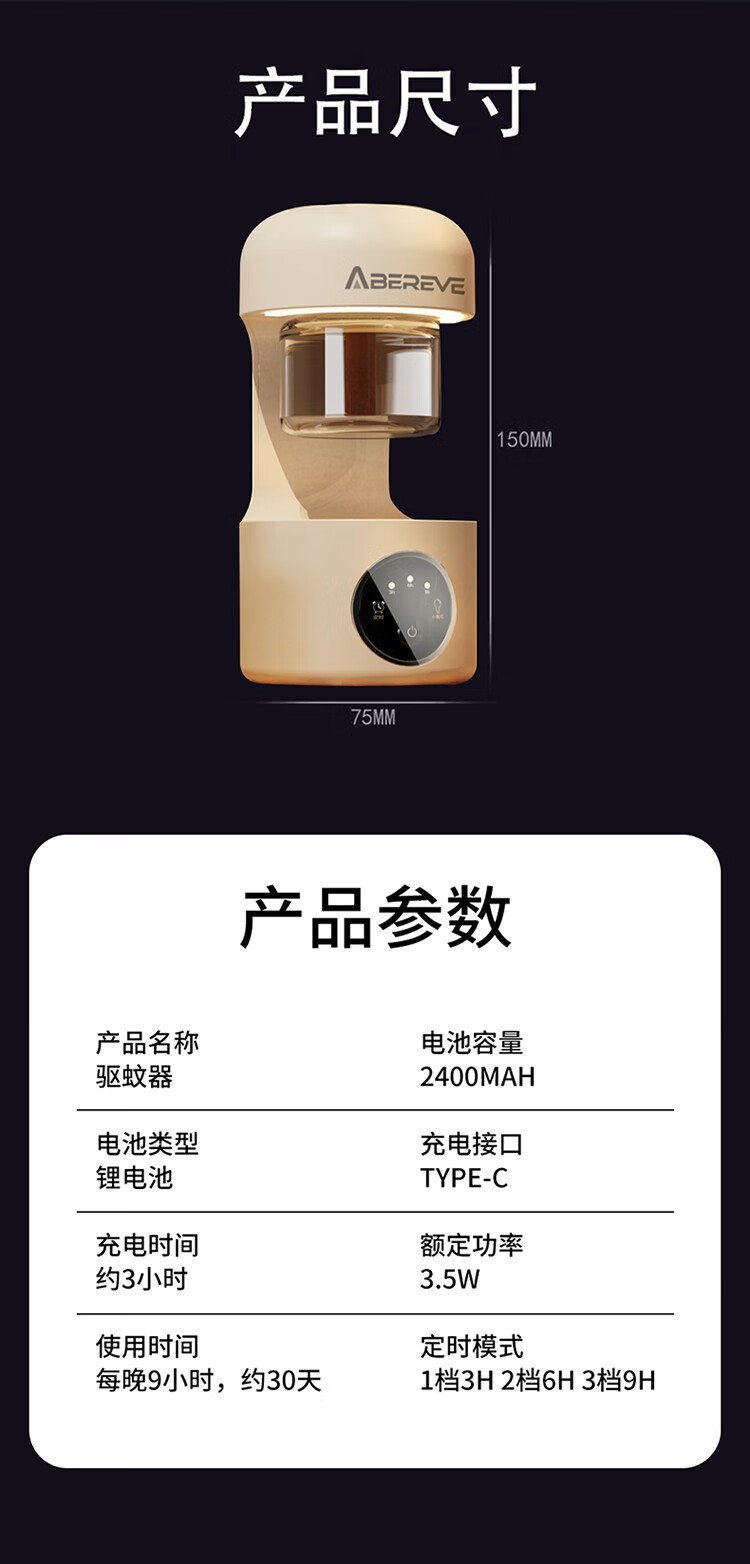 商品名称:ABEREVE/艾贝丽充电款驱蚊灯一机两液ABL-QW681