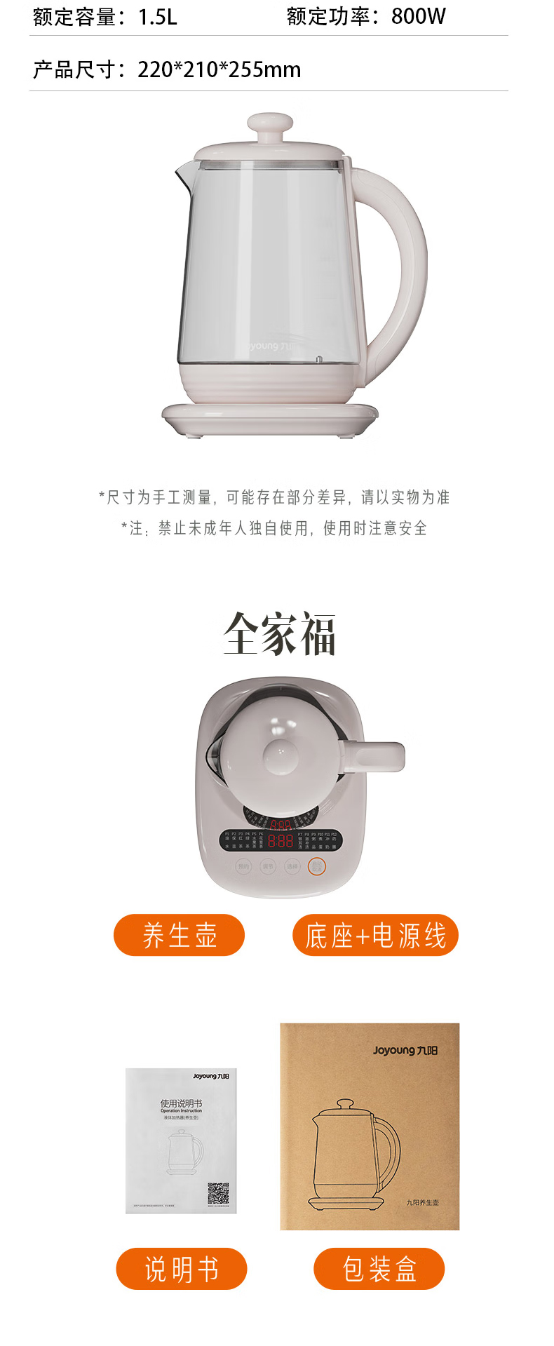 商品名称:【京东配送】Joyoung/九阳1.5升养生壶K15F-WY6123