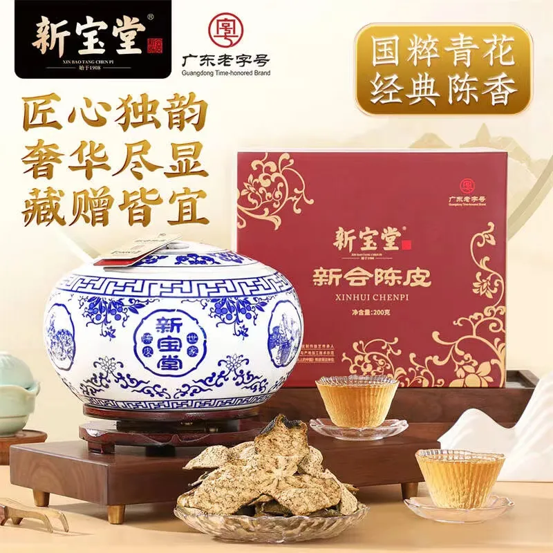 新宝堂 新会陈皮老陈皮广东特产青花瓷礼盒装 送礼佳品200克/100克盒