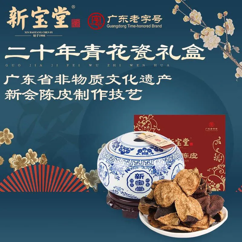 商品名称:新宝堂 新会陈皮老陈皮广东特产青花瓷礼盒装 送礼佳品200克/100克盒