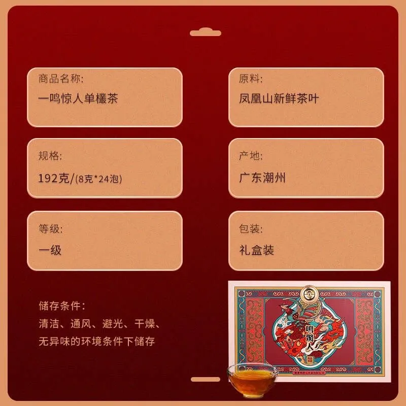 商品名称:和德元 一鸣惊人 凤凰山单枞茶 花香型乌龙茶新鲜茶叶礼盒装 192克/盒