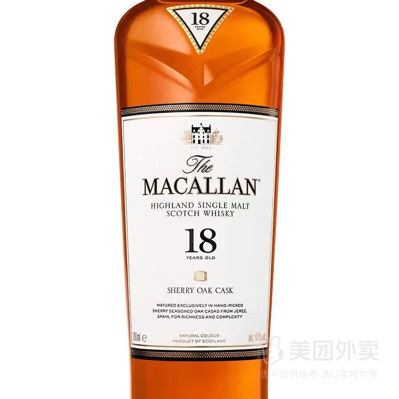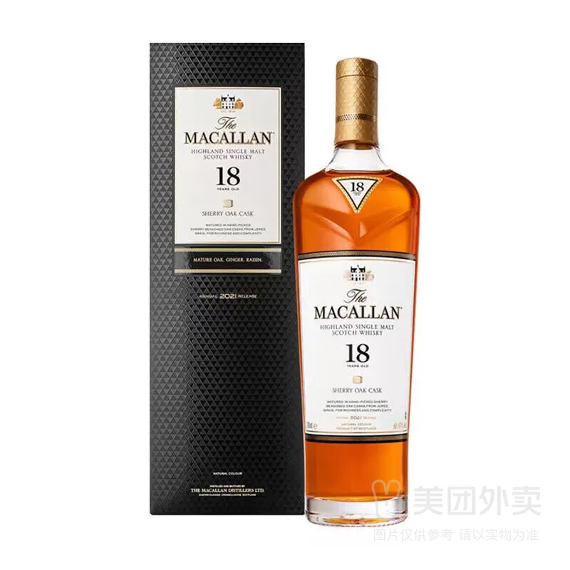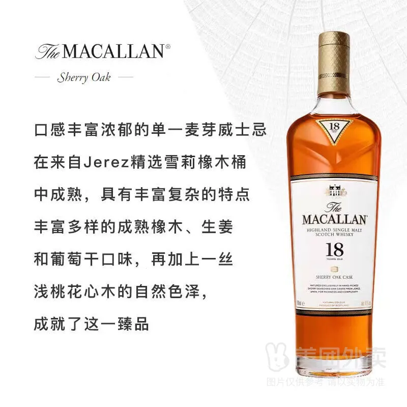 商品名称:麦卡伦 18年单一麦芽苏格兰威士忌 单桶 雪莉桶 700ml/瓶 原装进口