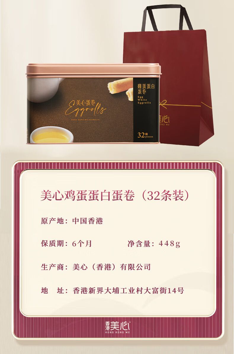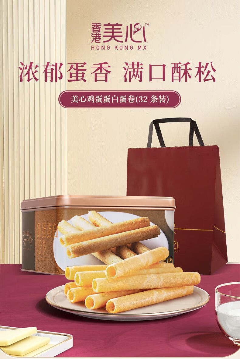 商品名称:美心鸡蛋卷448g黄油蛋卷饼干礼盒办公室休闲零食