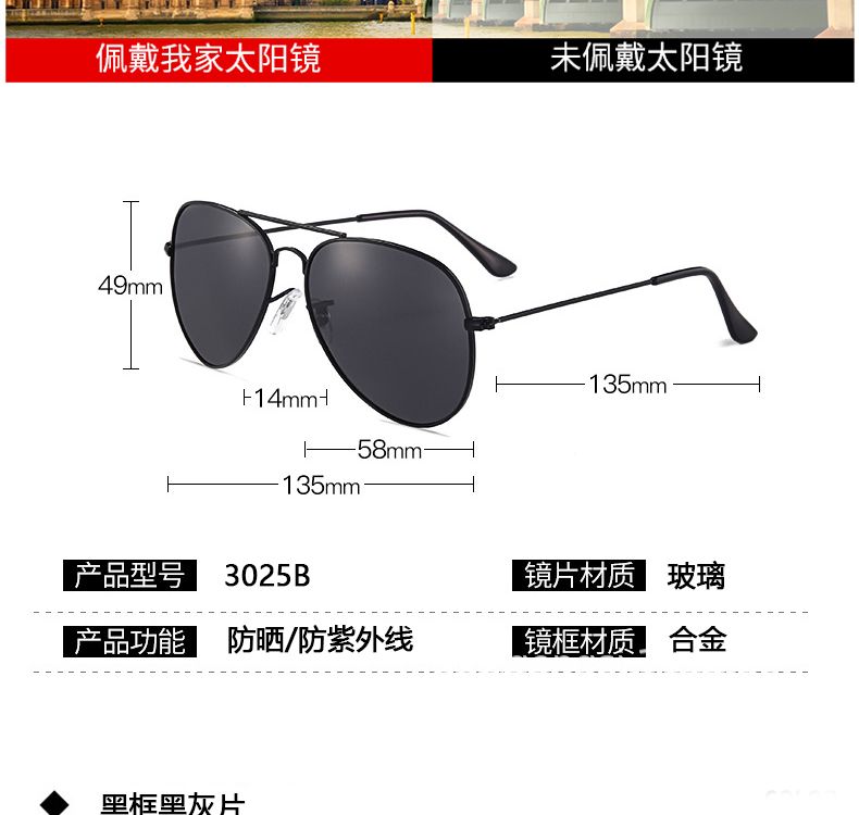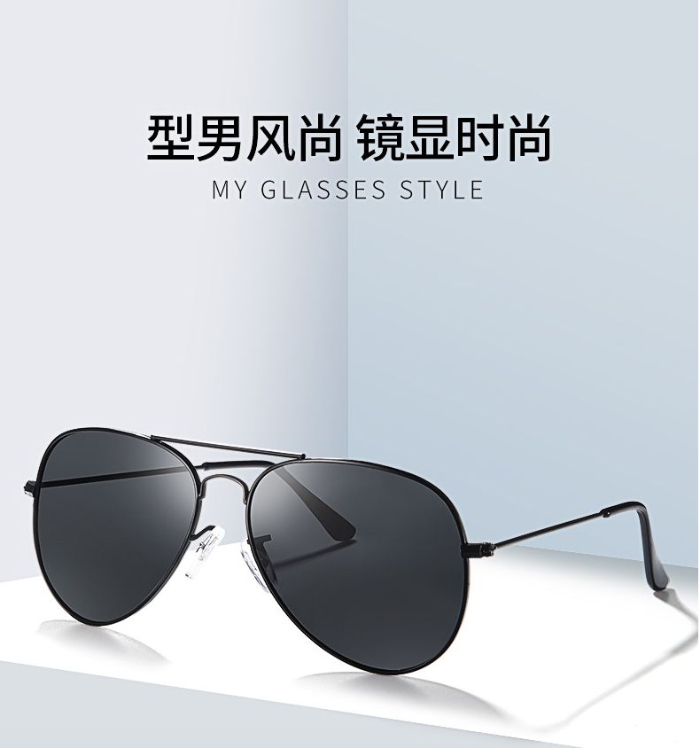 骊佳 高清太阳镜经典男女同款飞行员墨镜开车驾驶镜3025黑框黑灰片