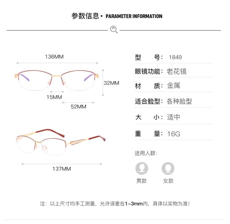 商品名称:骊佳防蓝光老花镜时尚手机眼镜老视镜1849