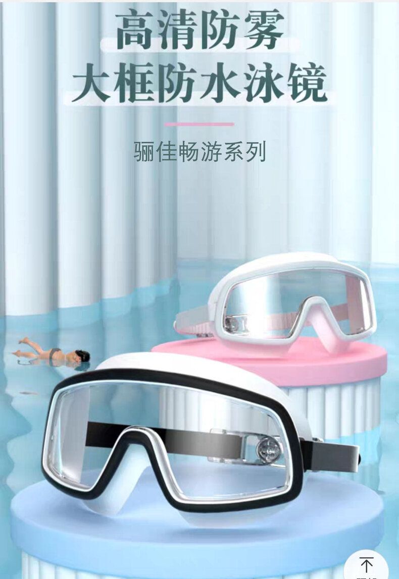 骊佳 大视野防雾大框防水亲子款泳镜6001