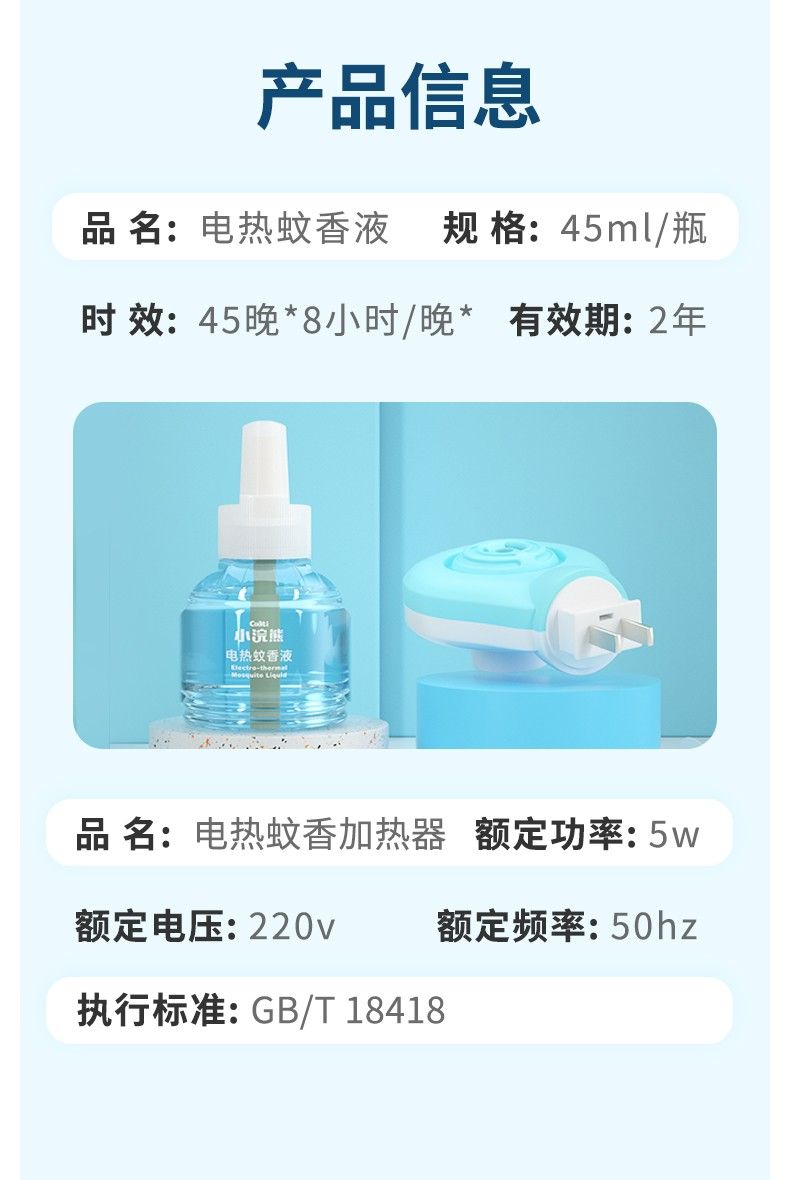 商品名称:小浣熊 婴儿电热蚊香液 45ml*6瓶+【加热器*2】