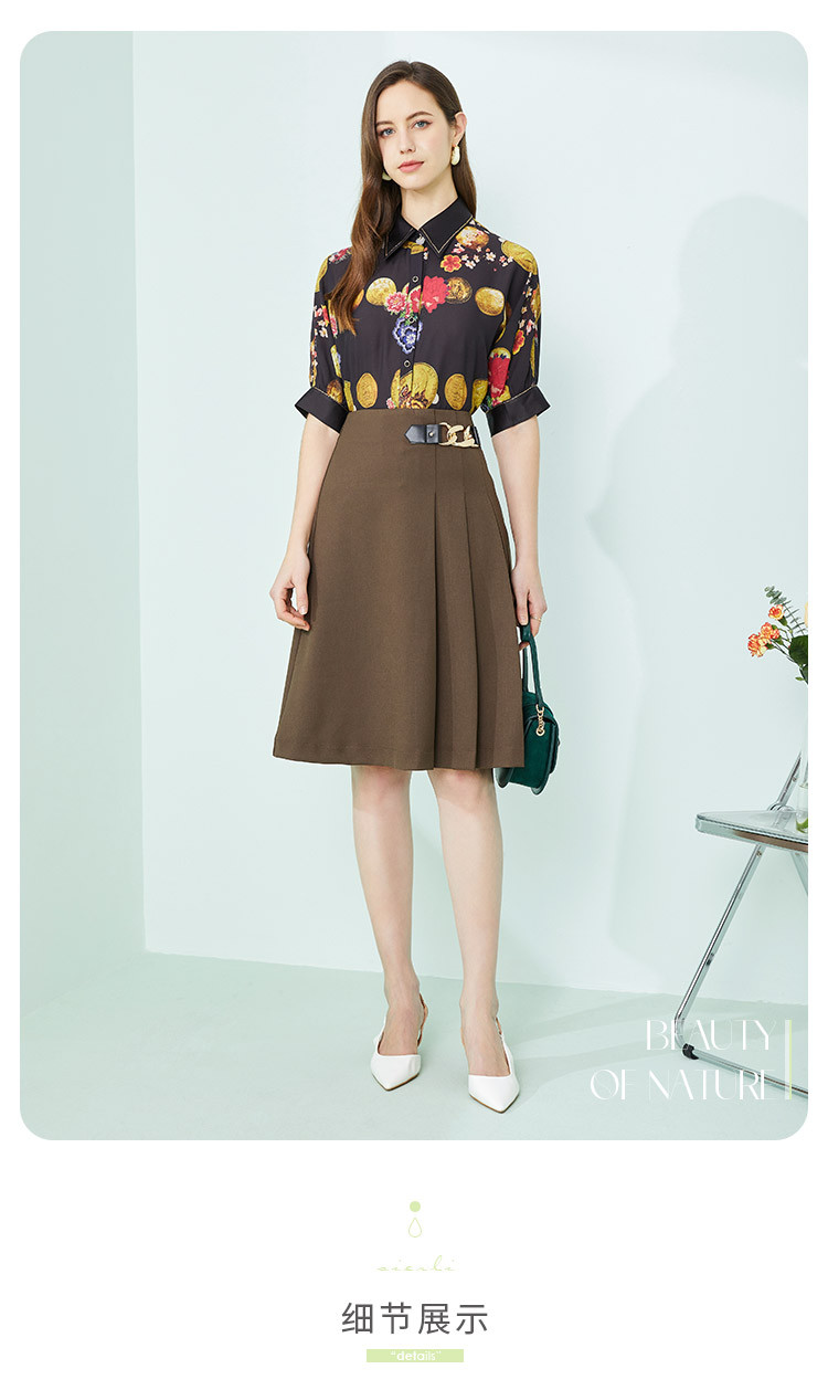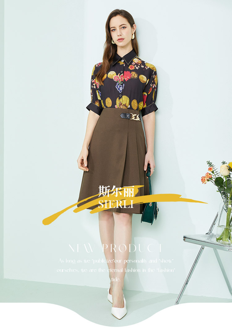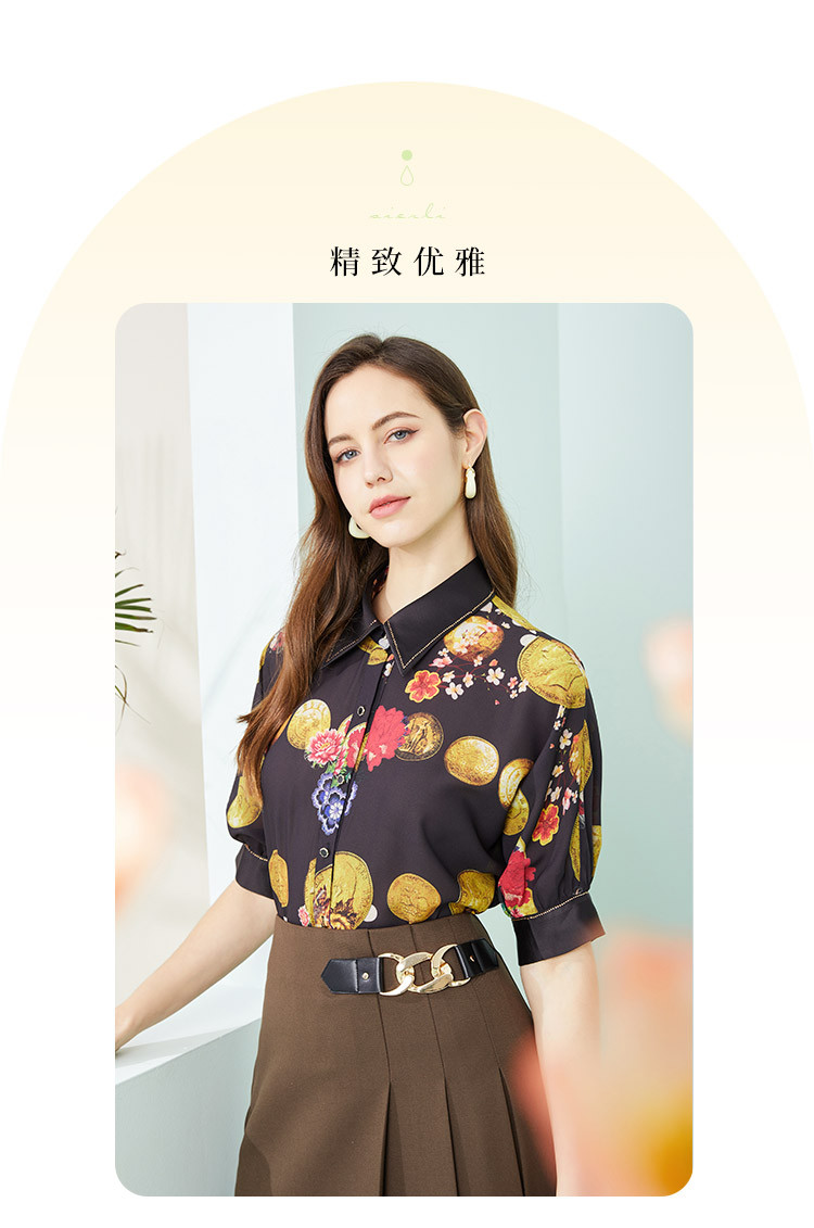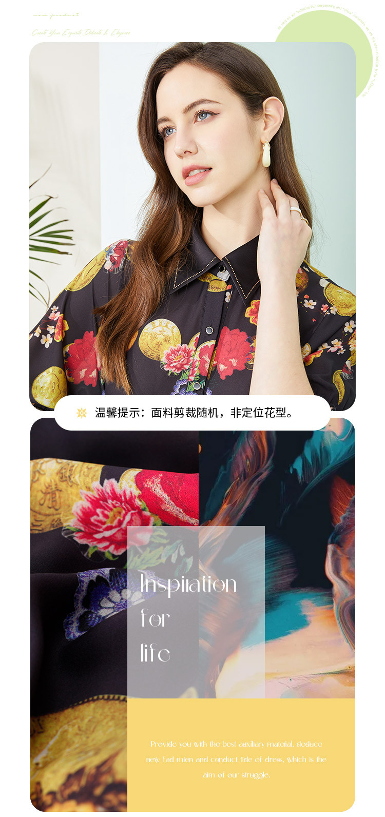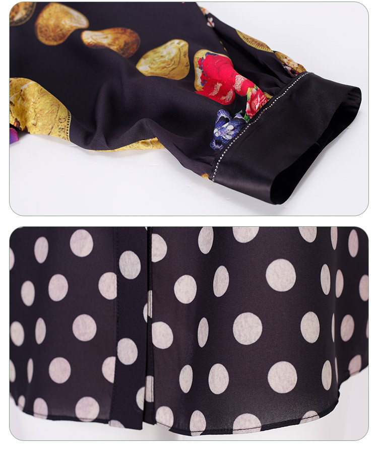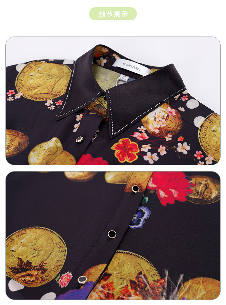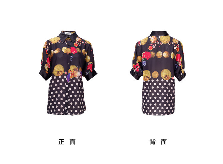 商场同款春季彩色不规则波点印花撞色烫钻领宽松衬衣 736799