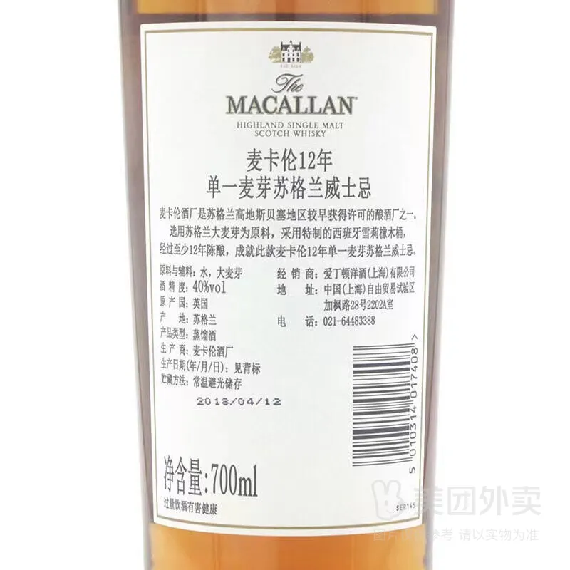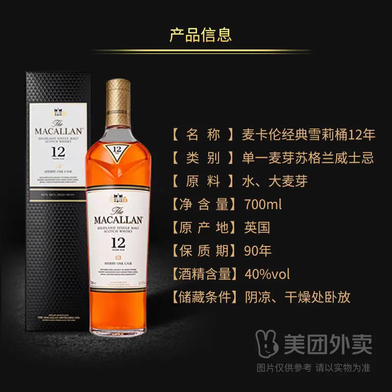 商品名称:麦卡伦 12年单一麦芽苏格兰威士忌 单桶 雪莉桶