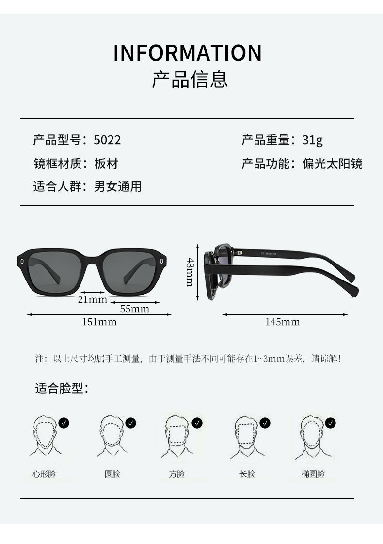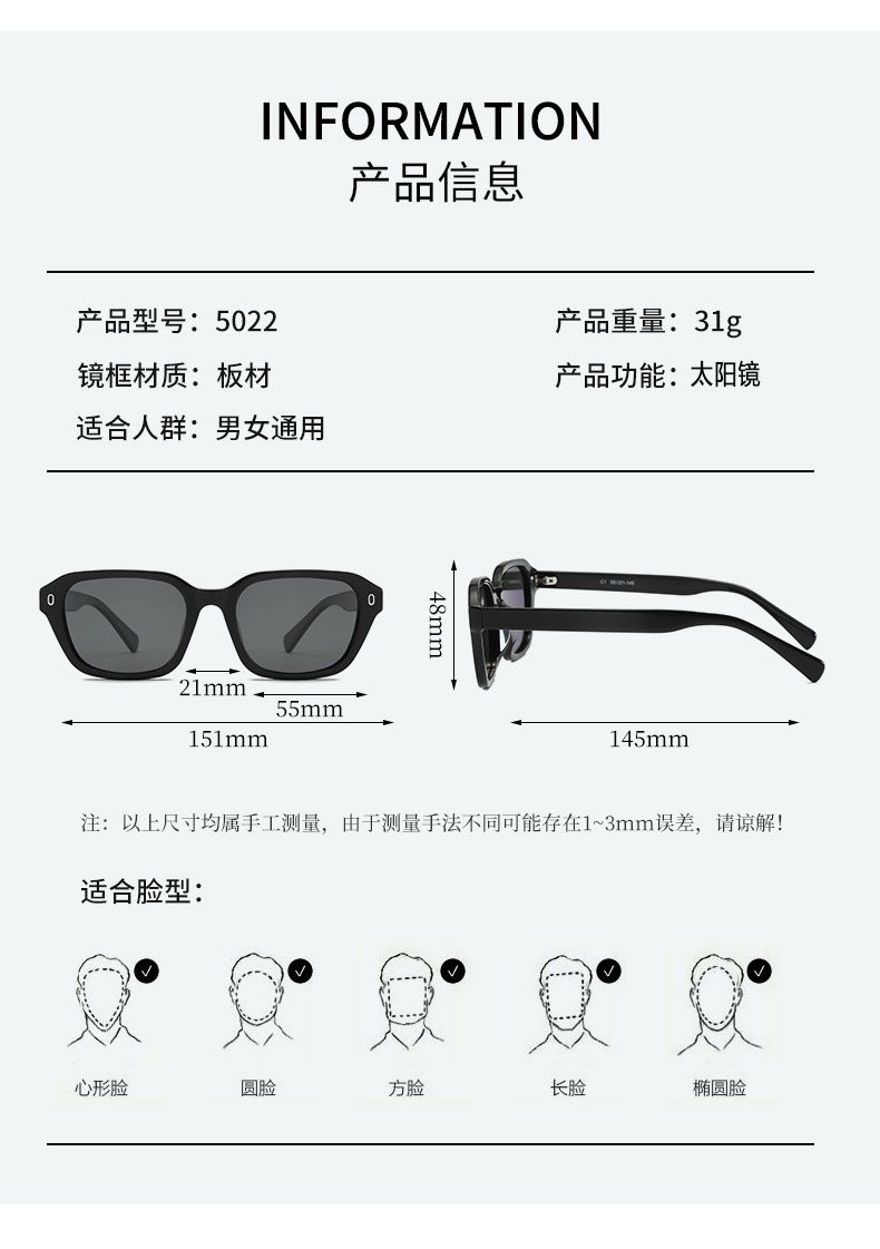 商品名称:骊佳 太阳镜方圆框小圆钉高清墨镜5022