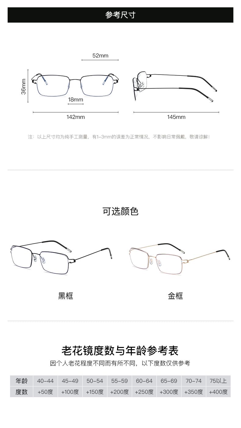 商品名称:骊佳防蓝光老视镜钟南山同款眼镜 1623