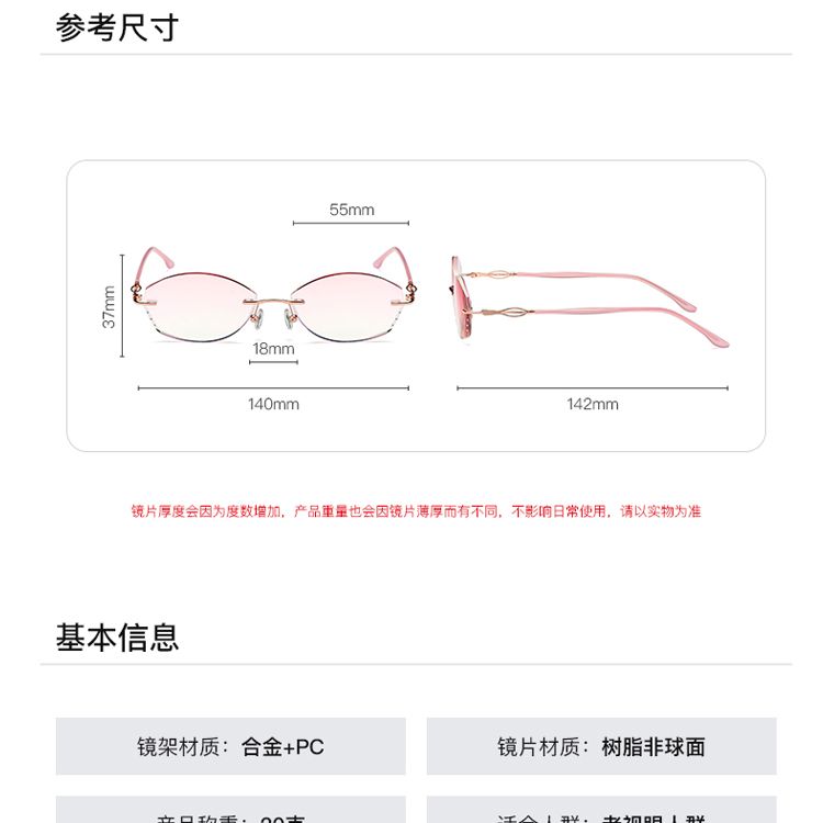 商品名称:骊佳钻石切边老花镜防蓝光护目镜6168