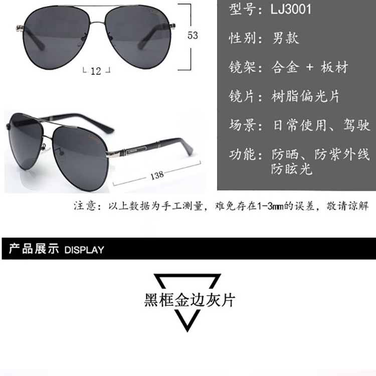 商品名称:男士高清偏光太阳镜驾驶镜蛤蟆镜3001