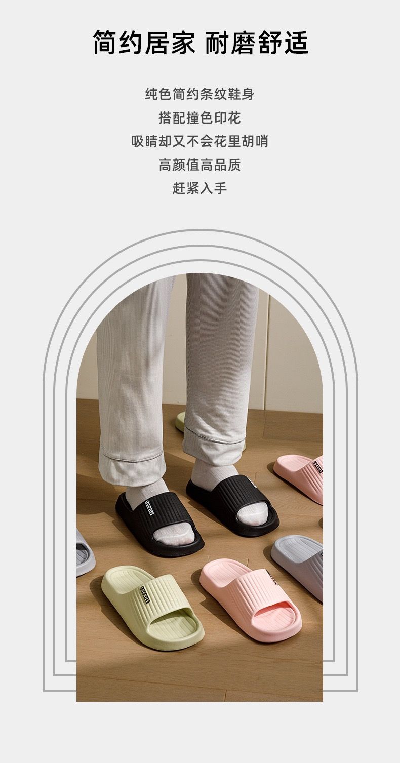 宅小年 简约条纹家居凉拖鞋2双(女鞋)