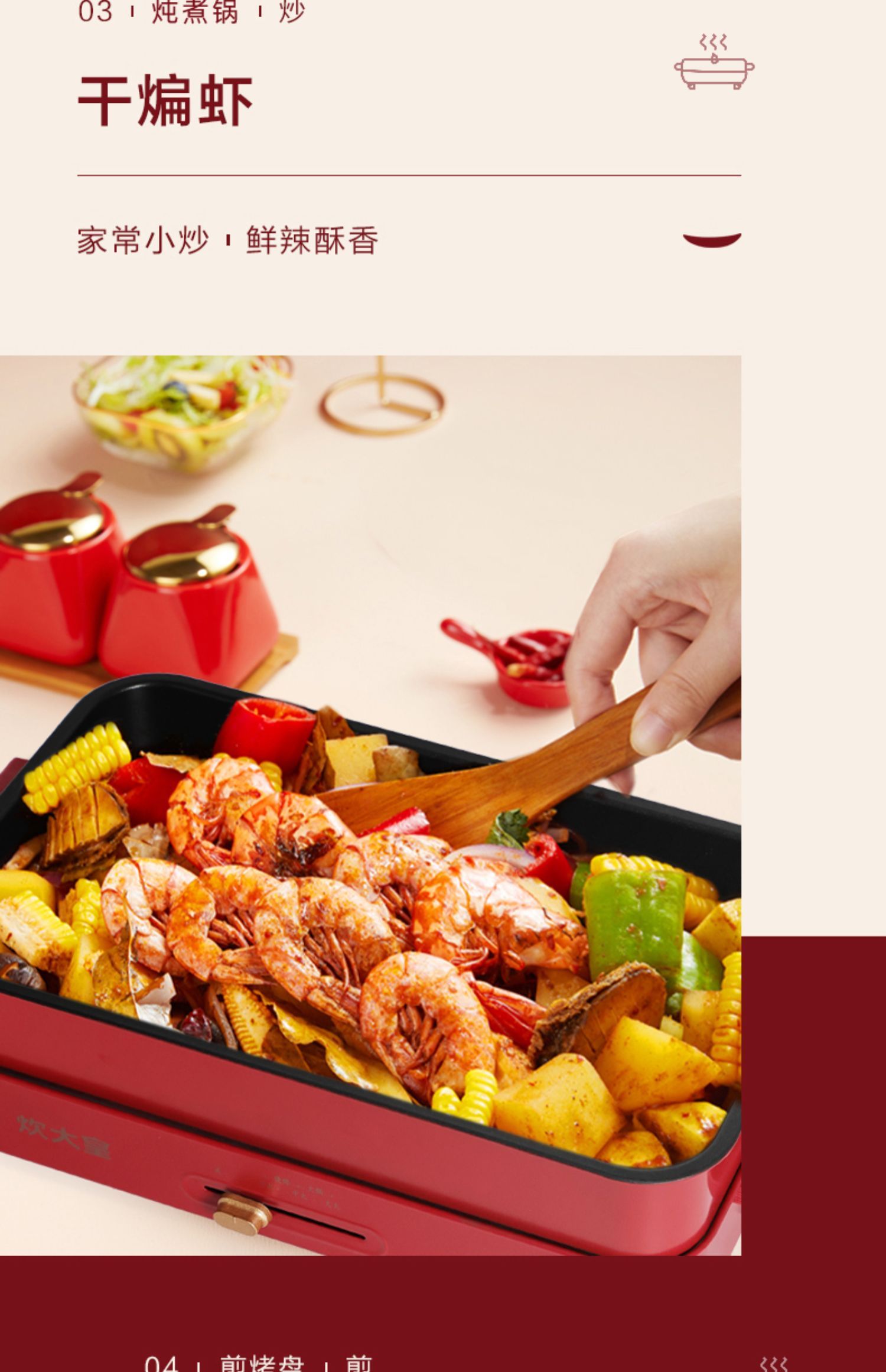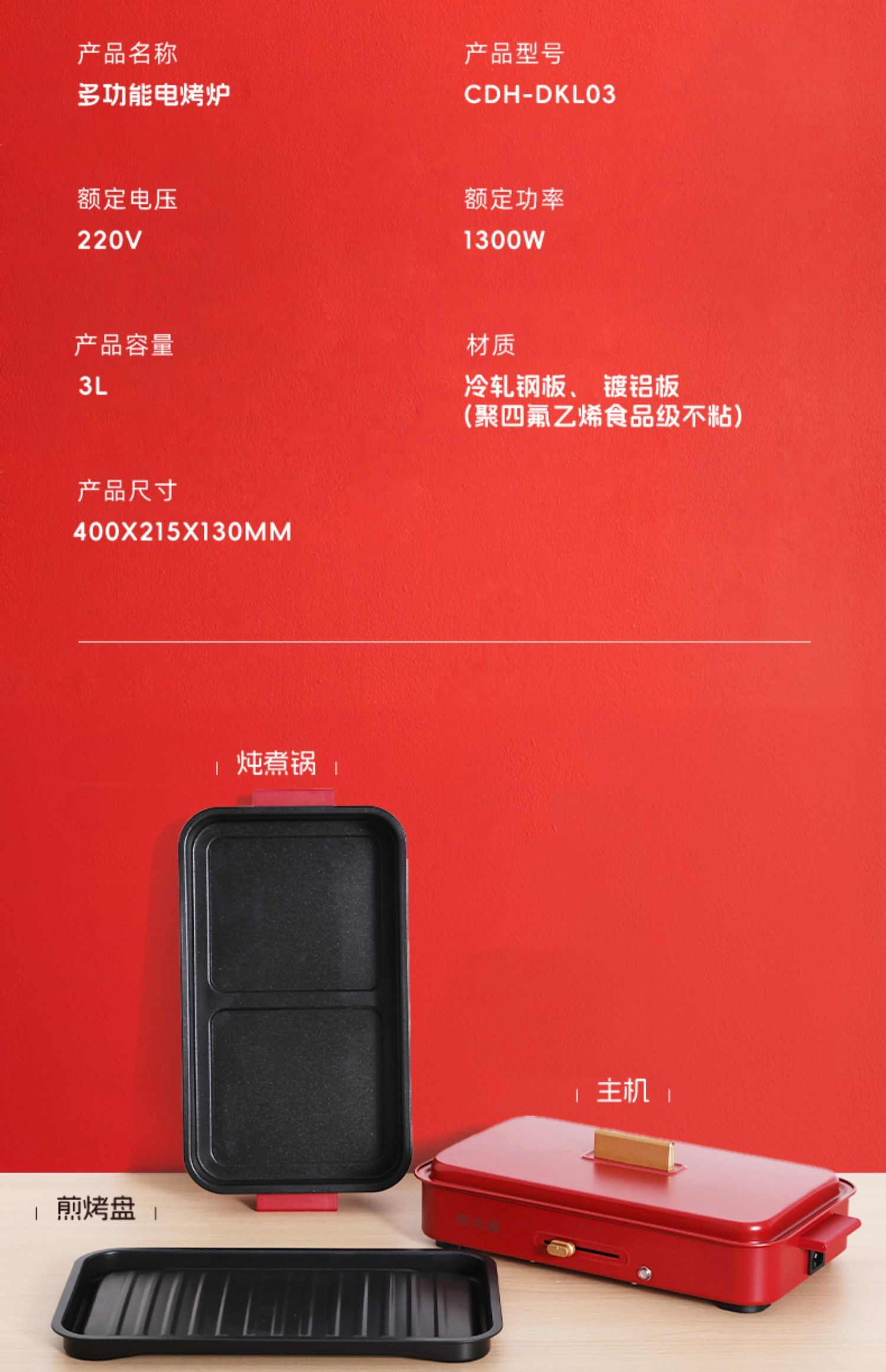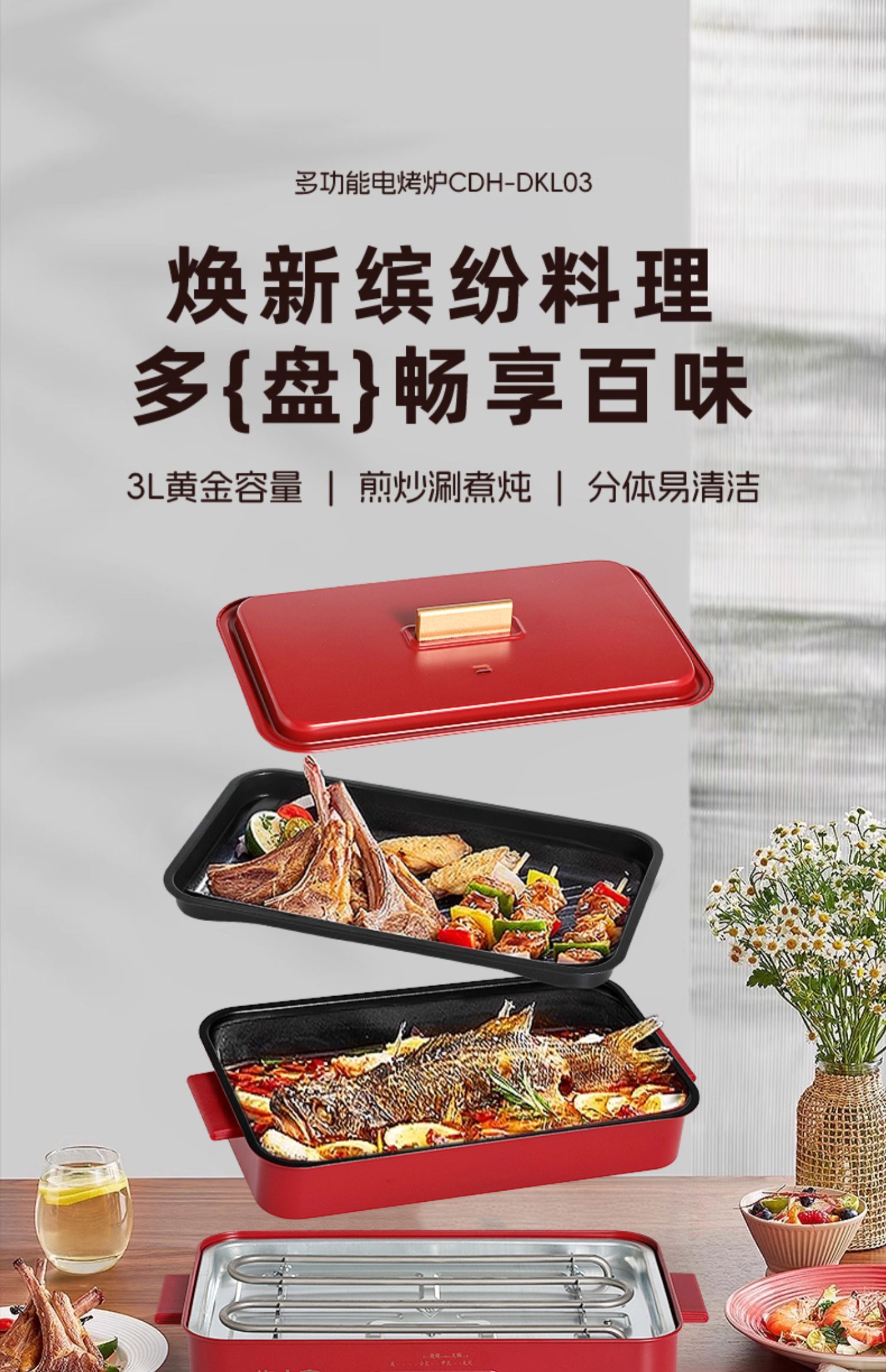 商品名称:炊大皇 多功能电烤盘CDH-DKL03 家用3L不粘煎锅烤盘一体电烤炉烤锅烤肉烧烤烤串