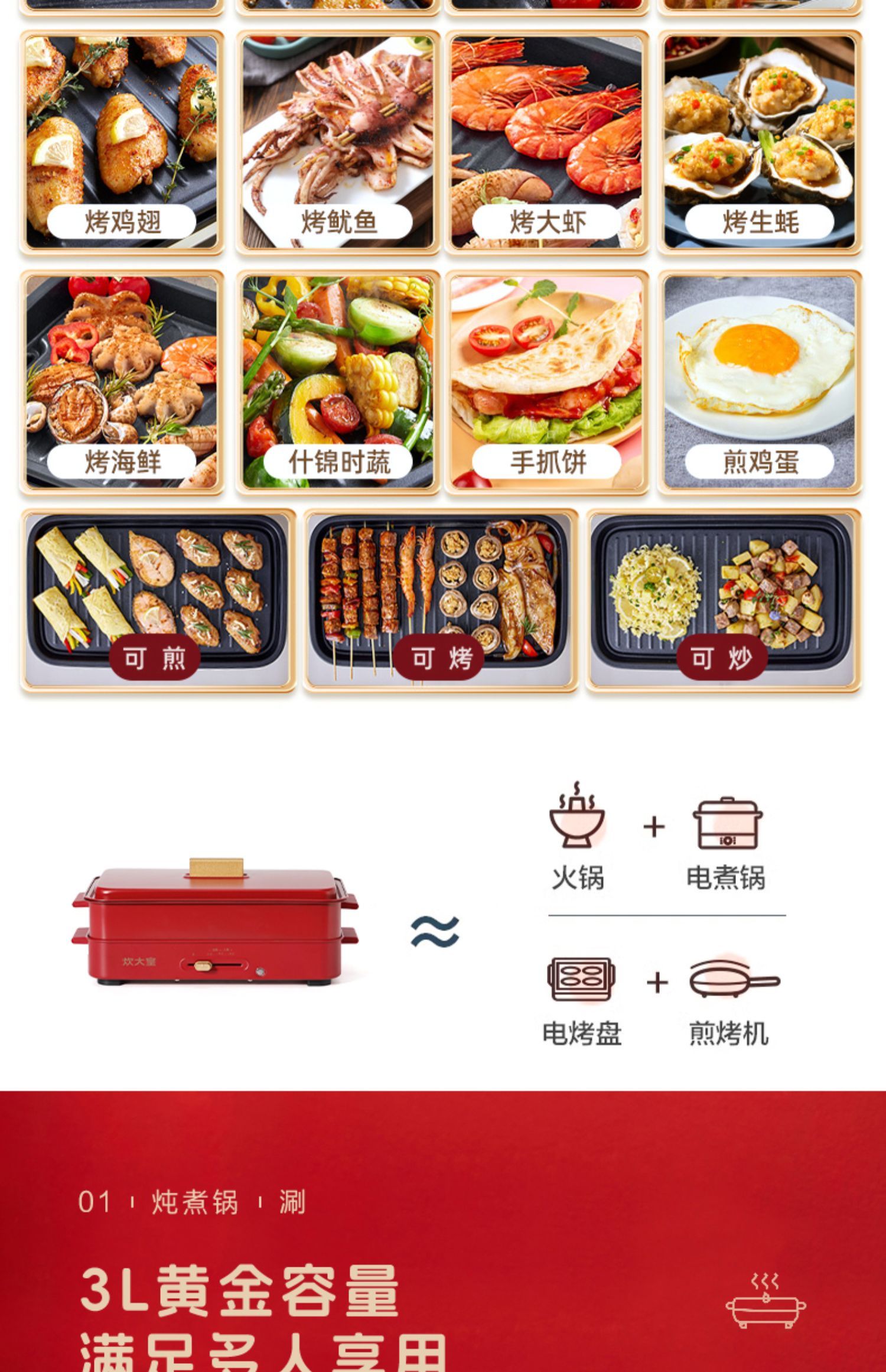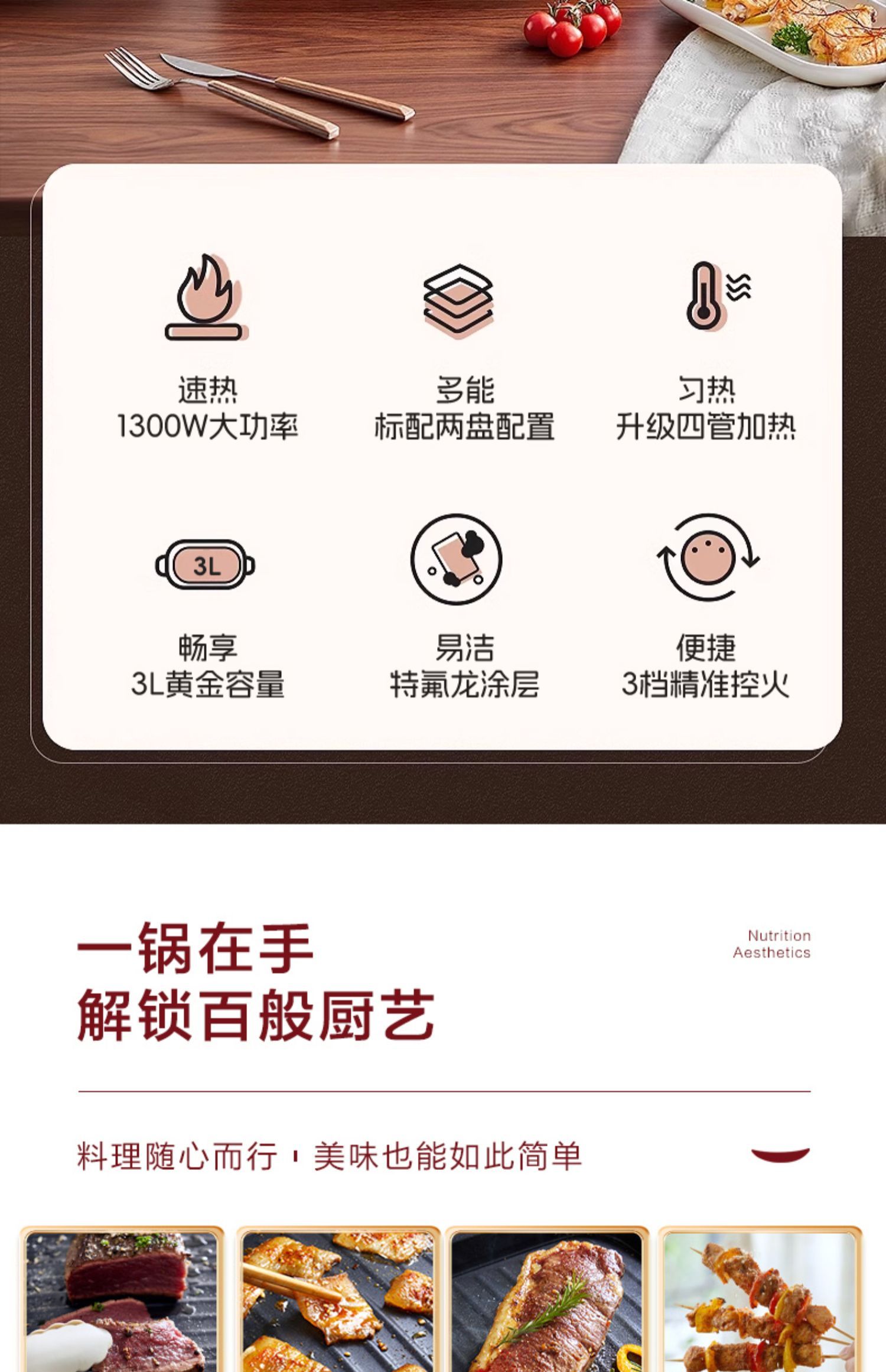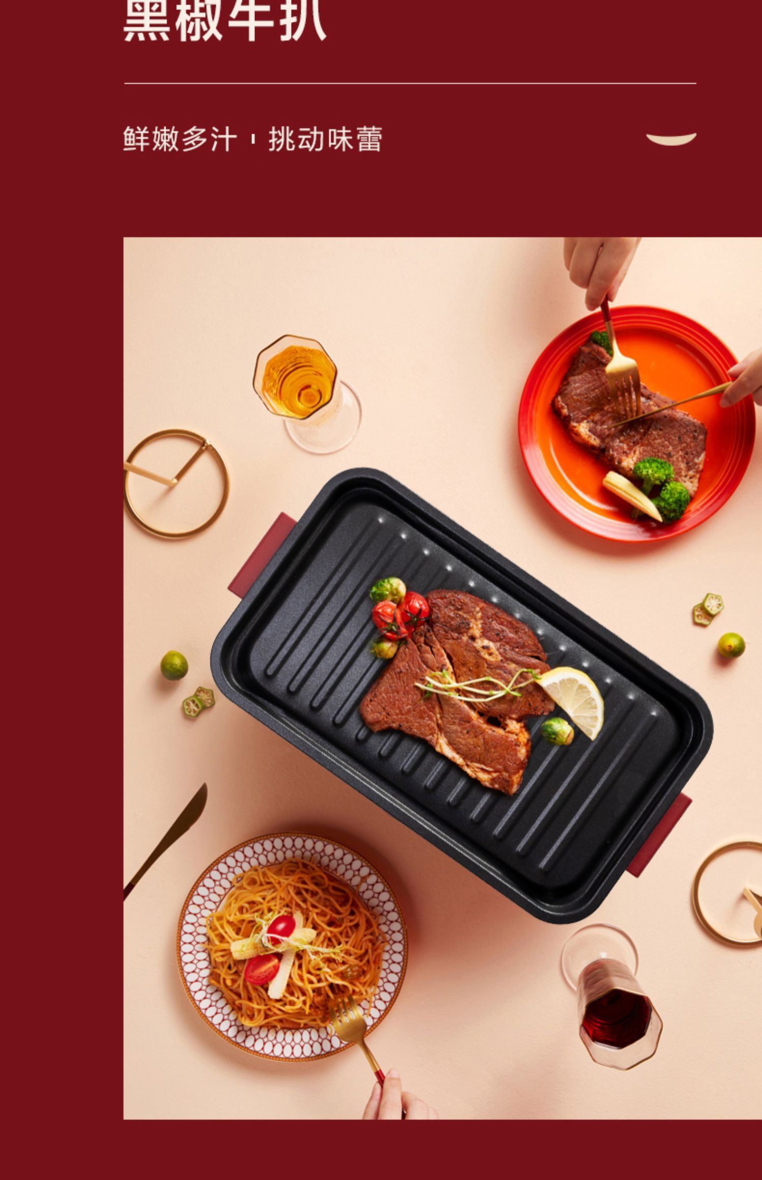 商品名称:炊大皇 多功能电烤盘CDH-DKL03 家用3L不粘煎锅烤盘一体电烤炉烤锅烤肉烧烤烤串