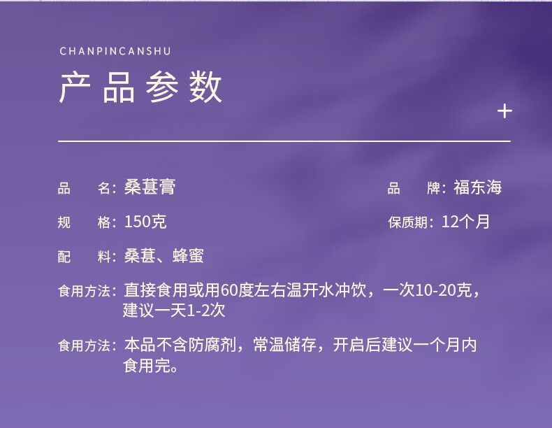 商品名称:【福东海】桑椹膏150克/罐